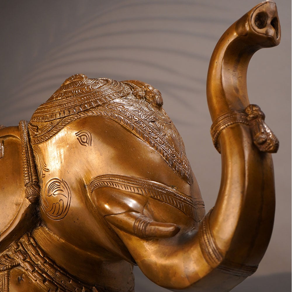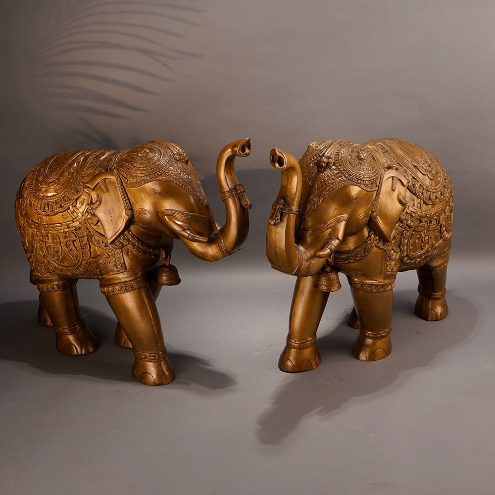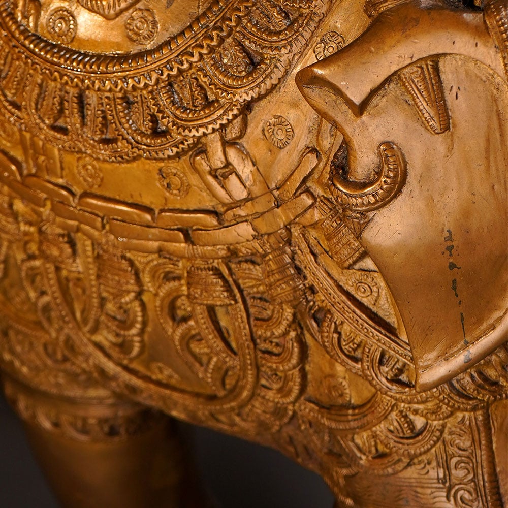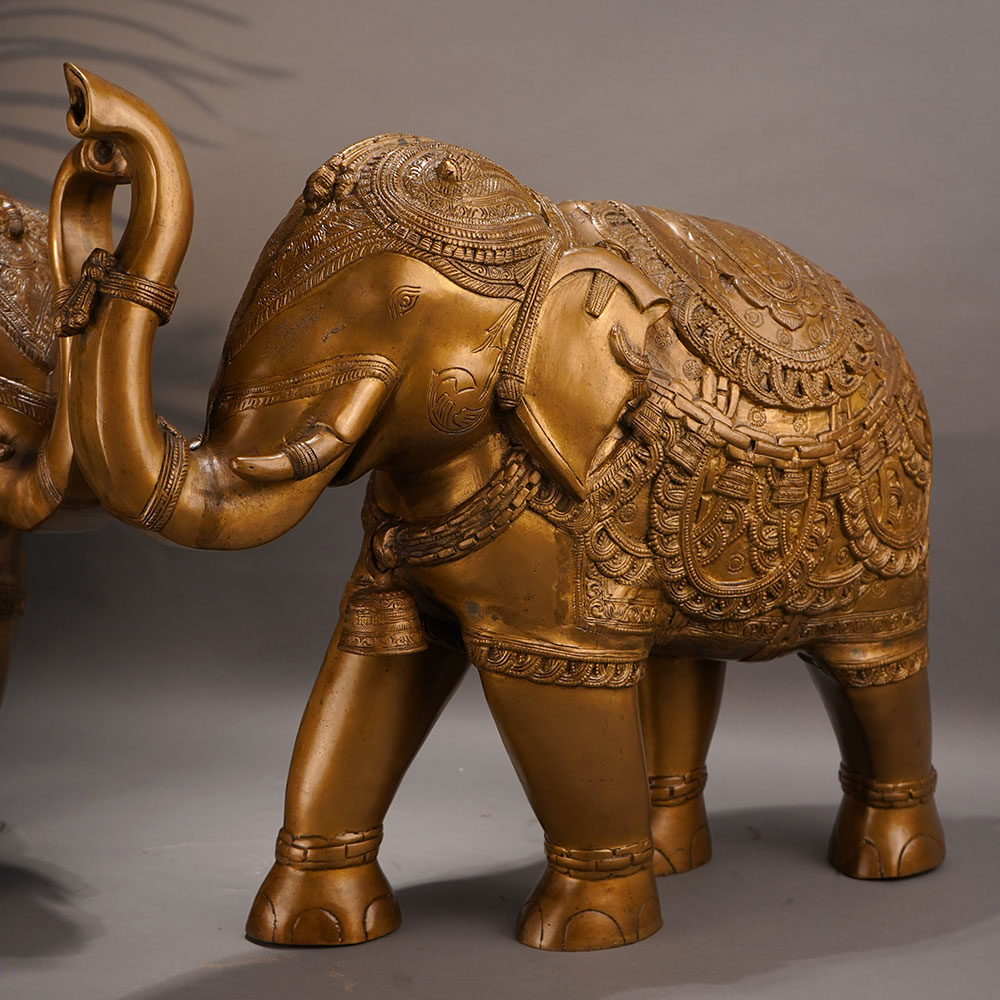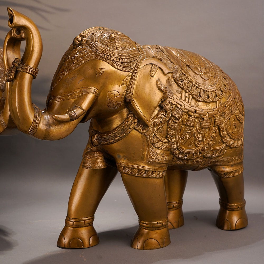 This stunning vintage brass elephant statue commands attention with its striking presence and intricate craftsmanship. Crafted with meticulous detail, this magnificent piece showcases the elephant's powerful stature and graceful lines, making it a true work of art. Bring the majestic beauty of the elephant into your home or office with this captivating brass statue. Its impressive size and gleaming brass finish will instantly elevate any space, commanding attention and sparking conversation. Whether displayed on a shelf, table, or mantle, this stunning piece will infuse your surroundings with a sense of timeless elegance and exotic flair. This vintage brass elephant statue is the perfect addition for those who appreciate fine craftsmanship and desire to infuse their space with a touch of the wild. Its captivating presence will transport you to the heart of the African savanna, evoking a sense of adventure and wonder in every glance.