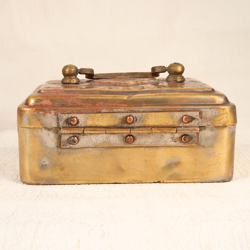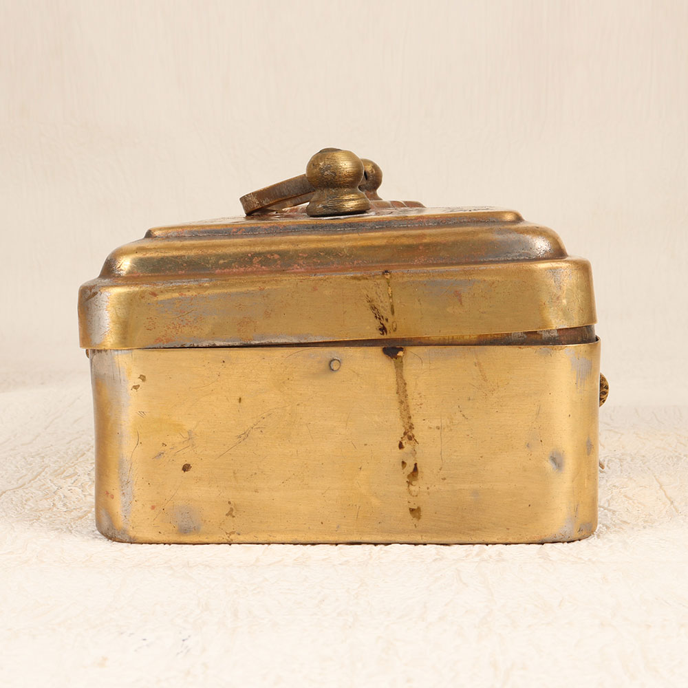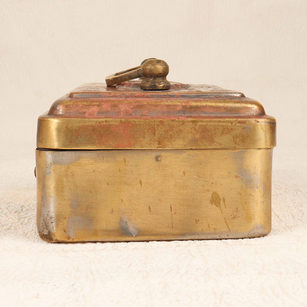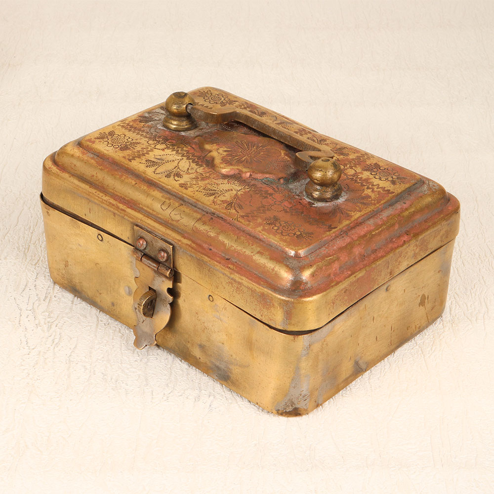 Decorate your home with the timeless elegance of our Vintage Brass Rectangular Jewelry Box which is a masterpiece handcrafted by highly skilled Indian artisans. This exquisite box is a testament to the artistry of traditional craftsmanship, meticulously fashioned from high-quality brass to exude a sense of luxury. The antique brown finish adds a touch of nostalgia, evoking the charm of bygone eras. The top of the jewelry box is adorned with intricate engravings, showcasing a delicate fusion of patterns that tell a story of cultural richness. A sturdy handle and latch provide both functionality and a touch of vintage charm. This versatile piece is not just a repository for precious jewelry or stones but also a captivating addition to any setting - whether at home, in the office, a restaurant, hotel, or café. Immerse yourself in the allure of yesteryears by incorporating this brass jewelry box into your vintage collection. Its aesthetic appeal makes it an ideal gift for loved ones during special, festive, or auspicious occasions, offering a unique blend of utility and artistic expression.
