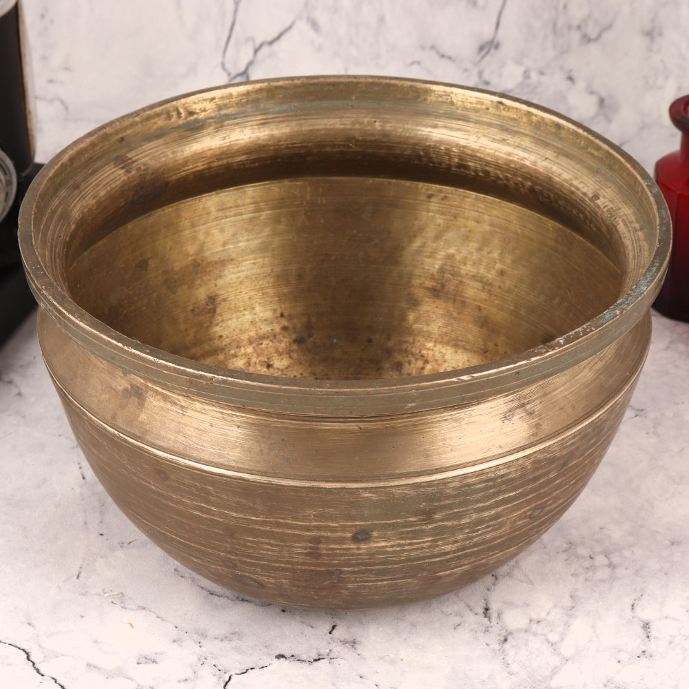 Adorn your interior with the timeless elegance of our Vintage Brass Flower Pot. Crafted with meticulous attention to detail by highly skilled Indian artisans, this exquisite piece showcases the rich heritage of South Indian artistry. Made from high-quality brass, it boasts a lustrous antique brown finish that exudes an air of sophistication. This versatile flower pot is the perfect addition to any space – whether it's your home, office, restaurant, hotel, cafe, or shop. Its stunning design makes it a captivating decorative piece that effortlessly complements a wide range of interior styles. Use it as a flower pot to bring a touch of nature indoors, or display it as an artful centerpiece. Collectors will appreciate its vintage charm, as it seamlessly blends with antique collections. The Vintage Brass Flower Pot also makes for a thoughtful and unique gift for your loved ones on special, festive, or auspicious occasions. It symbolizes not only beauty but also the enduring craftsmanship of Indian artisans, making it a cherished addition to any setting.