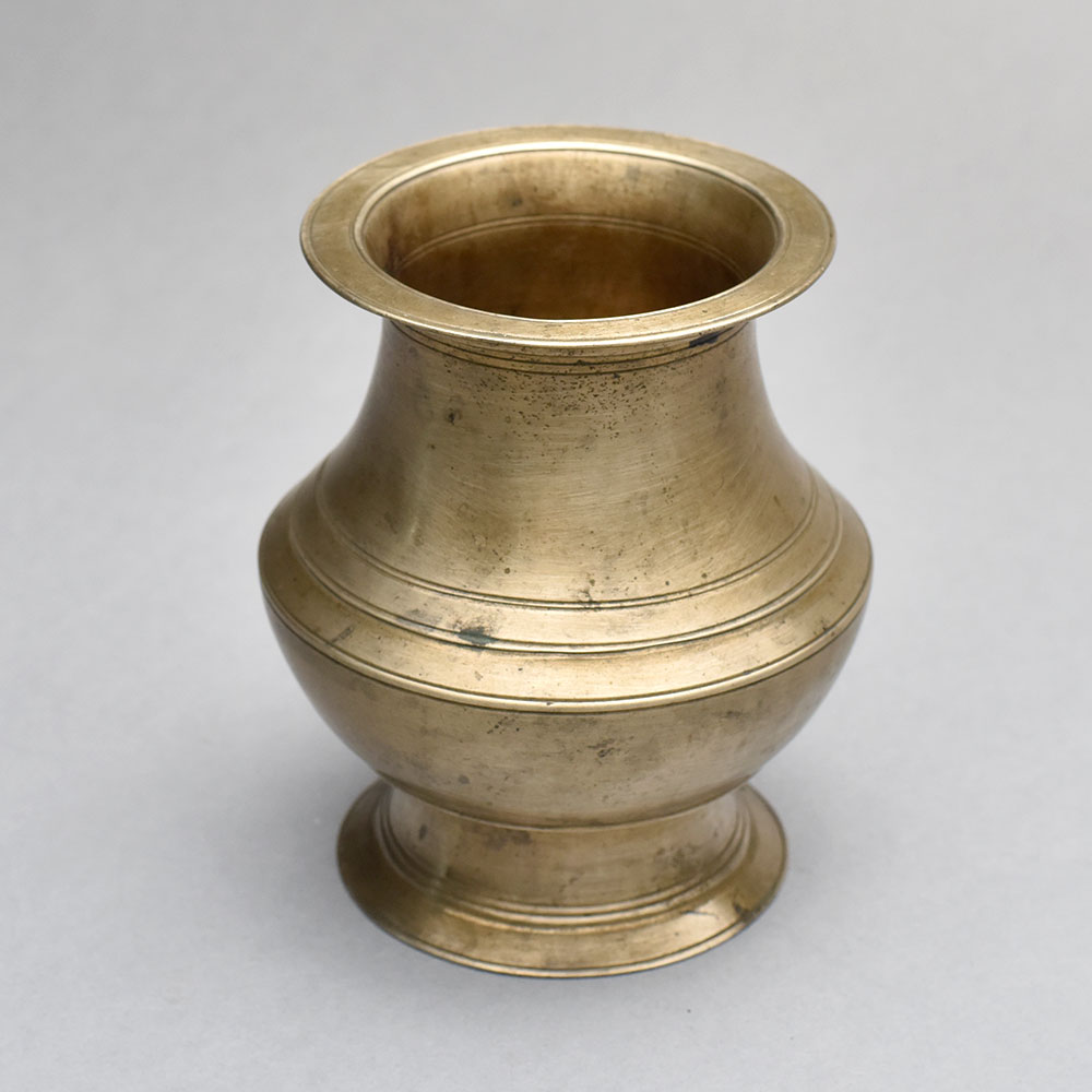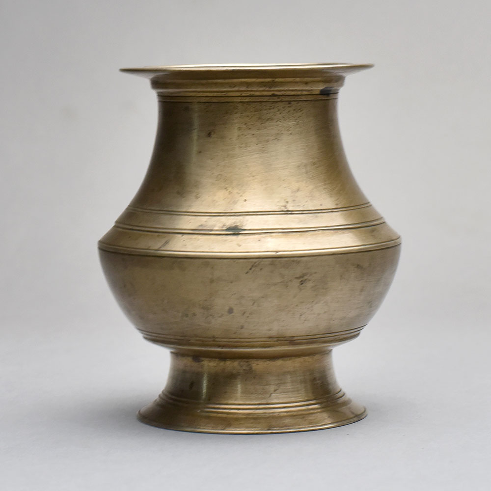 Unlock the timeless elegance of sacred rituals with this stunning vintage brass water pot from South India. Crafted with meticulous attention to detail, this heirloom-quality piece is the perfect addition to your spiritual practice or home decor. This vintage brass water pot is more than just a functional vessel - it's a work of art that connects you to the rich cultural heritage of India. Whether you use it to hold sacred water for puja ceremonies or display it as a stunning centerpiece, this pot will elevate your rituals and infuse your home with a sense of timeless beauty. Designed for the discerning spiritual seeker or lover of traditional craftsmanship, this brass water pot is a must-have for anyone seeking to infuse their space with a sense of ancient wisdom and reverence. Invest in a piece that will be cherished for generations, and let this exquisite vessel become a meaningful part of your daily rituals and sacred celebrations.