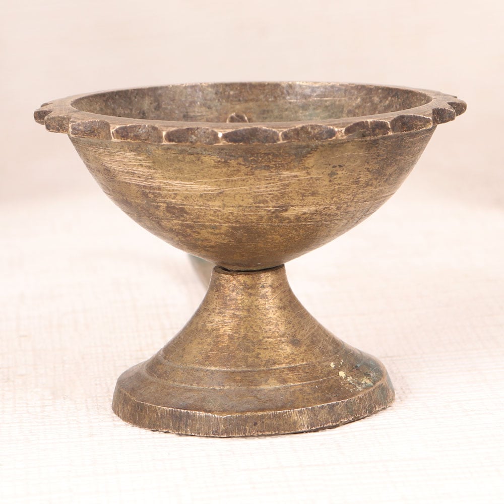 This Vintage Brass Aarti Lamp is a testament to the craftsmanship of highly skilled Indian artisans from Western India. Handcrafted with precision, this lamp boasts an antique brown finish that exudes timeless charm. Crafted from high-quality brass, it is not merely an object but a work of art that adds an aura of elegance to any setting. Whether it's your home, office, restaurant, hotel, shop, or cafe, this Aarti lamp serves a versatile purpose. Its primary function is to grace your prayer room, casting a warm, soothing light during morning and evening rituals. Additionally, it's a captivating decorative piece, appealing to vintage collectors and ideal for exhibition displays. To illuminate this masterpiece, simply fill it with mustard oil or ghee and use cotton wicks. This lamp offers a glimpse into India's rich cultural heritage and can be a cherished gift for your loved ones on special, festive, or auspicious occasions.
