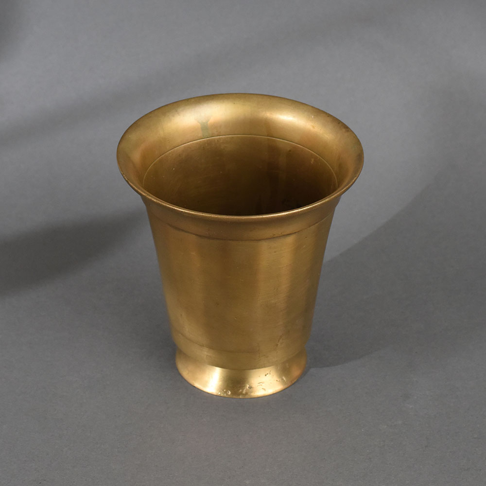 This traditional brass holy glass pot is a timeless vessel used in Hindu religious practices, especially for serving or offering sacred water (Gangajal), milk, or panchamrit during daily puja, temple rituals, and festive ceremonies. Made from solid brass, the pot features a sleek conical shape with a flared rim and a round pedestal base, ensuring both elegance and stability. Crafted with simplicity and purpose, this glass pot reflects the minimalist design ethos of traditional Indian metalware. Its polished surface and warm golden hue give it a refined, vintage appeal, while the sturdy base allows it to sit firmly on altars or ritual trays. Brass, a metal revered in Hinduism for its purifying qualities, helps preserve the sanctity of the contents and enhances spiritual vibrations during worship.