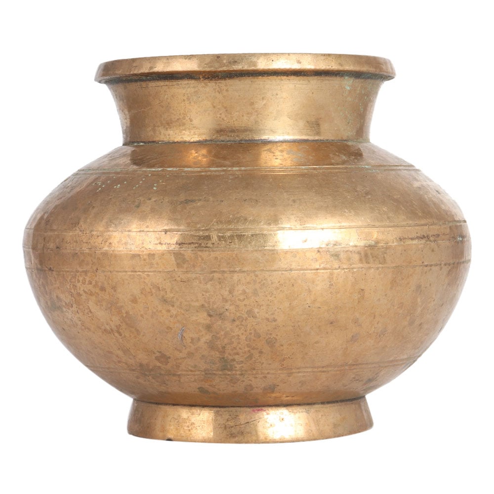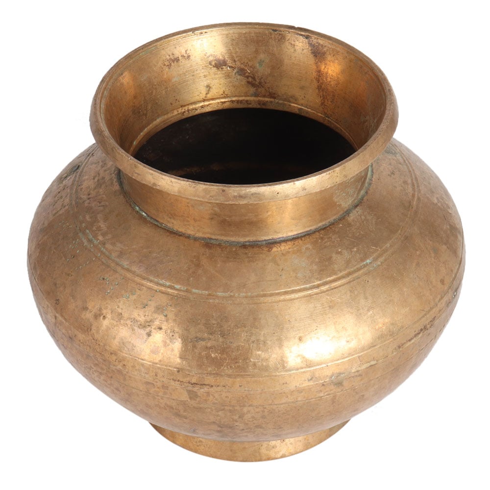 This handmade Indian Kalash or water pot is carved from brass metal alloy using ancient techniques. It has a sturdy appearance with a simple design. Kalash are used in the rituals of Hindu and worship of the god. Kalash are usually placed in the north or east of the room. It is believed that it spread positive energy in the house. In temples, Kalash is used to store holy water as it keeps the water germ-free. Place it in your home as a decorative piece of art or as a indoor flower pot on your table or shelf.