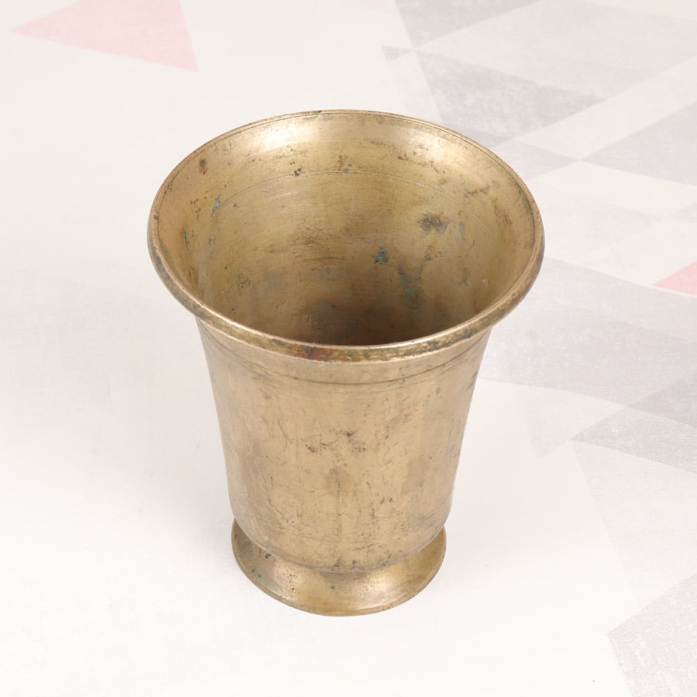 Infuse your spiritual practice with timeless elegance using this beautifully crafted brass holy water cup. Forged with skilled artistry passed down through generations, this cup features ornate engravings that pay homage to the region's iconic design motifs. The durable brass construction ensures it will be a cherished companion for all your sacred ceremonies, from daily blessings to grand pujas. Whether you're looking to elevate your home altar or seeking a thoughtful gift for the spiritually-inclined, this holy water cup is a must-have. Its versatile design allows it to seamlessly blend into any decor, adding a touch of cultural sophistication. Embrace the ancient wisdom of South India and let this captivating vessel deepen your connection to the divine with every use.