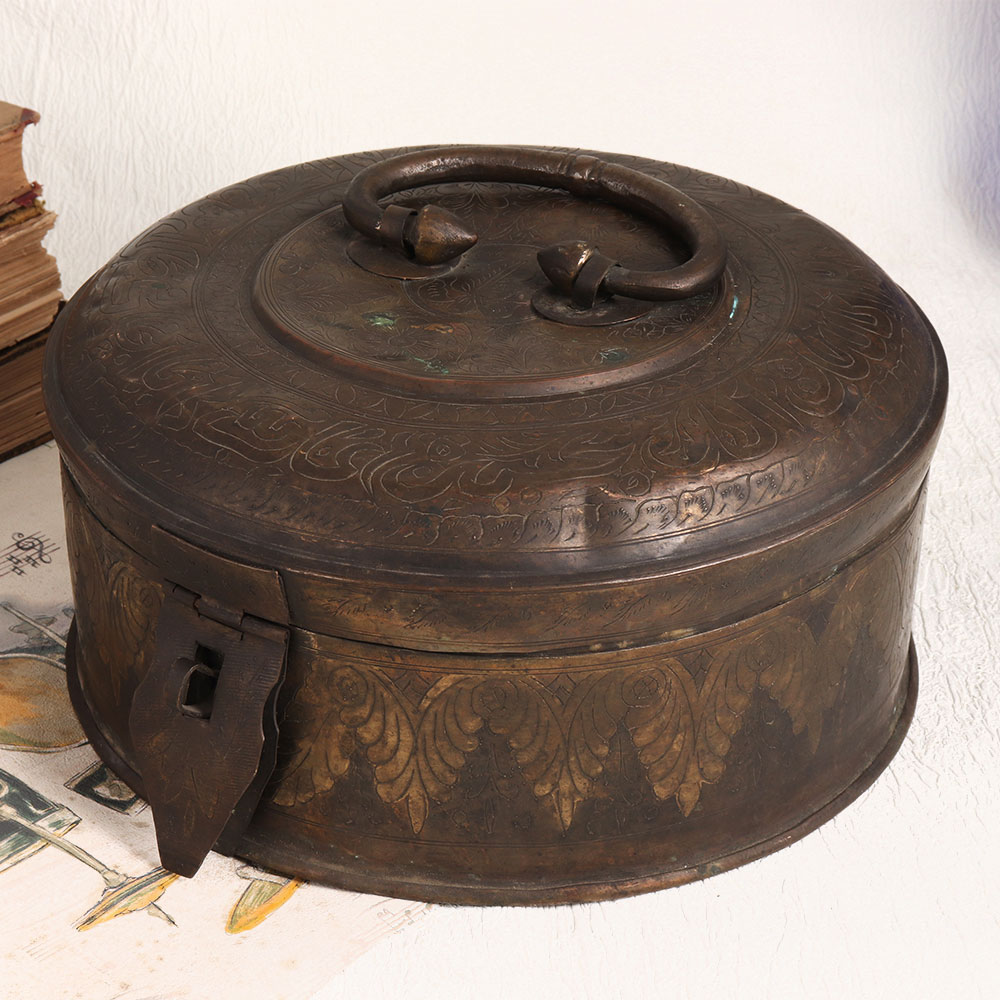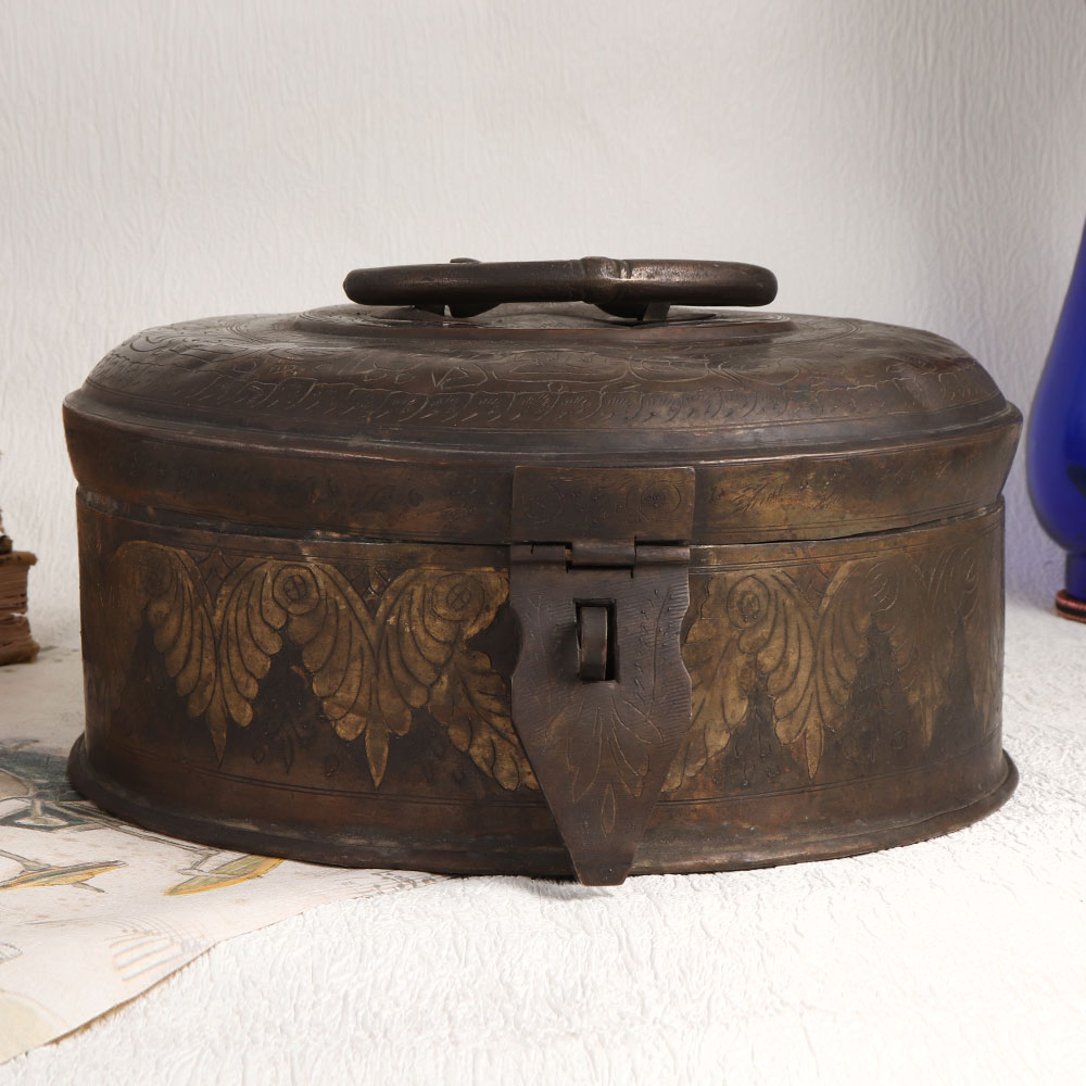 Buy a Vintage Brass Jewelry Box online which is a timeless piece of artistry that exudes elegance and craftsmanship. Handmade by talented Indian artisans, this jewelry box boasts impeccable quality, meticulously crafted from high-grade brass. Its antique brown finish adds a touch of nostalgia, while intricate engravings adorn the surface, telling a story of a bygone era. This jewelry box is more than just a storage solution, it's a statement piece that can enhance the ambiance of your home, office, restaurant, hotel, cafe, or shop. Place it on a vanity, a display shelf, or a reception desk to instantly elevate the surroundings. The secure latch and sturdy handle ensure the safety of your precious stones, jewelry, or other valuable items. This jewelry box isn't just a practical item, it's a conversation starter and a collector's dream, perfect for vintage enthusiasts and collectors looking to add a touch of history to their collection or display at exhibitions. Surprise your loved ones with this timeless gift on special, festive, or auspicious occasions, offering them a piece of art that transcends time.