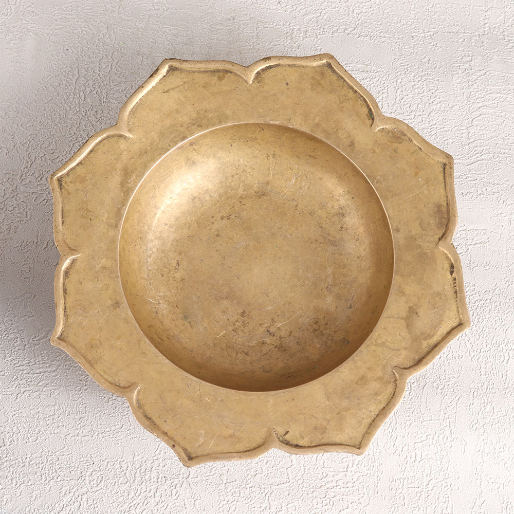 Buy a vintage brass bowl online from our website and get a hassle free delivery at your doorstep. Handmade by highly talented Indian artisans, this ornate piece boasts a captivating floral design on its top and a timeless antique brown finish, making it a striking addition to any space. Crafted with meticulous attention to detail, this brass plate is a testament to the artistry and dedication of the artisans who created it. It exudes a sense of old-world charm, making it the perfect choice for enhancing the ambiance of your home, office, hotel, cafe, shop, or restaurant. Whether you're a collector of vintage treasures or simply want to add a touch of elegance to your surroundings, this brass plate is a versatile and captivating choice. It can be prominently displayed in your own vintage collection, become a focal point in an exhibition, or serve as a thoughtful gift for your loved ones on special, festive, or auspicious occasions.