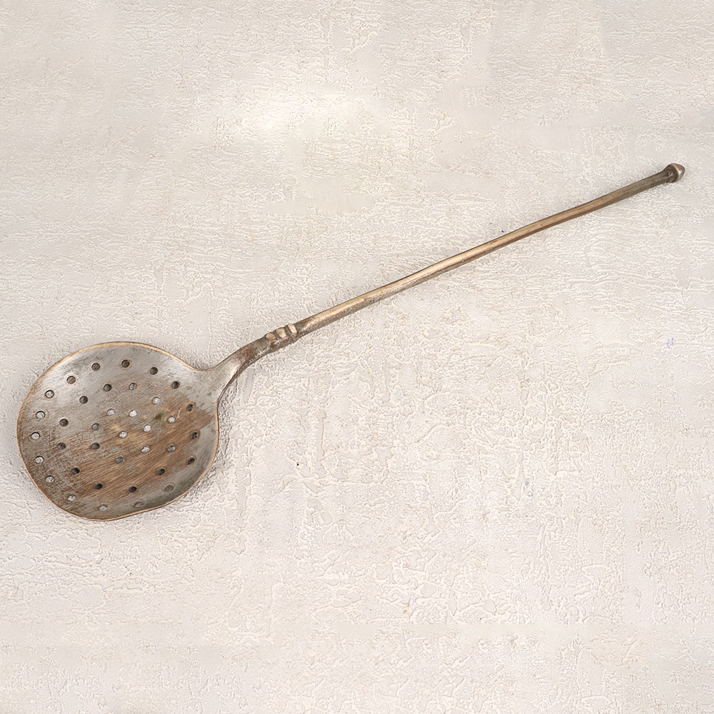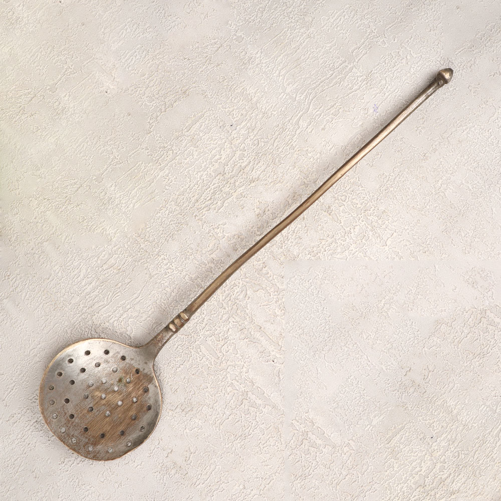 With its delicately crafted slots and polished surface, this slotted spoon is not just a tool, but a work of art. The fine detailing and warm golden tone of the brass make it an ideal piece for displaying in your kitchen, dining area, or even as part of a curated home decor collection. Whether used for decorative purposes or as a functional utensil, this spoon is sure to add an exotic, traditional charm to your space.
