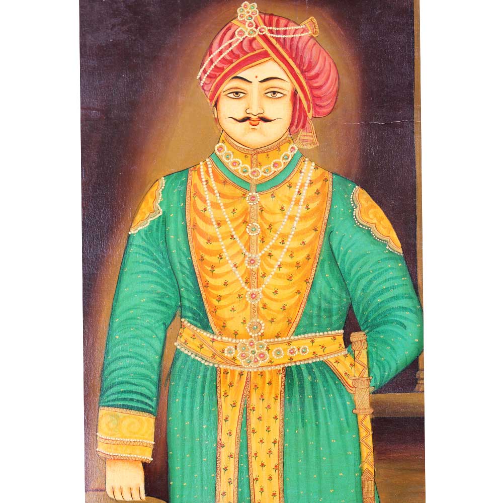 Handmade multicolour painting of Hindu maharaja is an excellent wall art for the family room, bedroom, restaurant, workplace, resort, kitchen area, office, and bar counter.