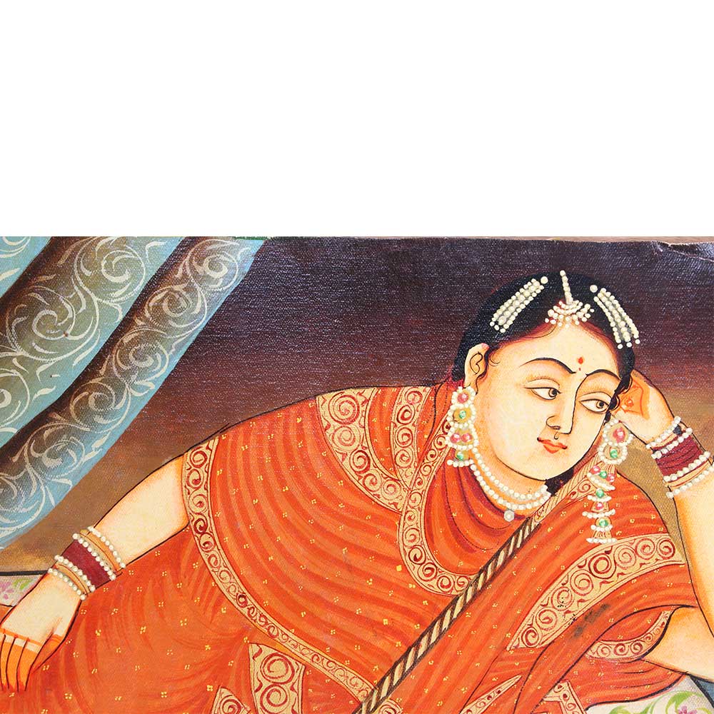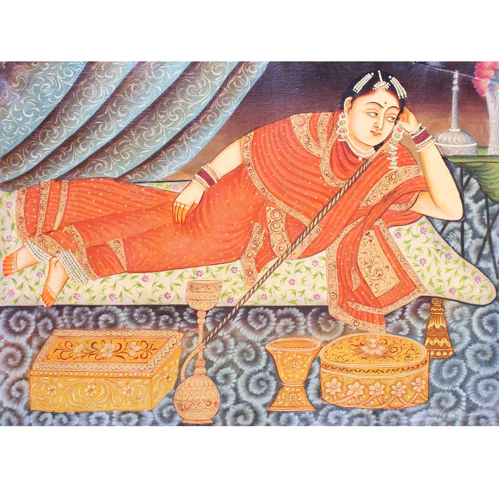 • Indian Munhall Painting Of Maharani With a Hookah
