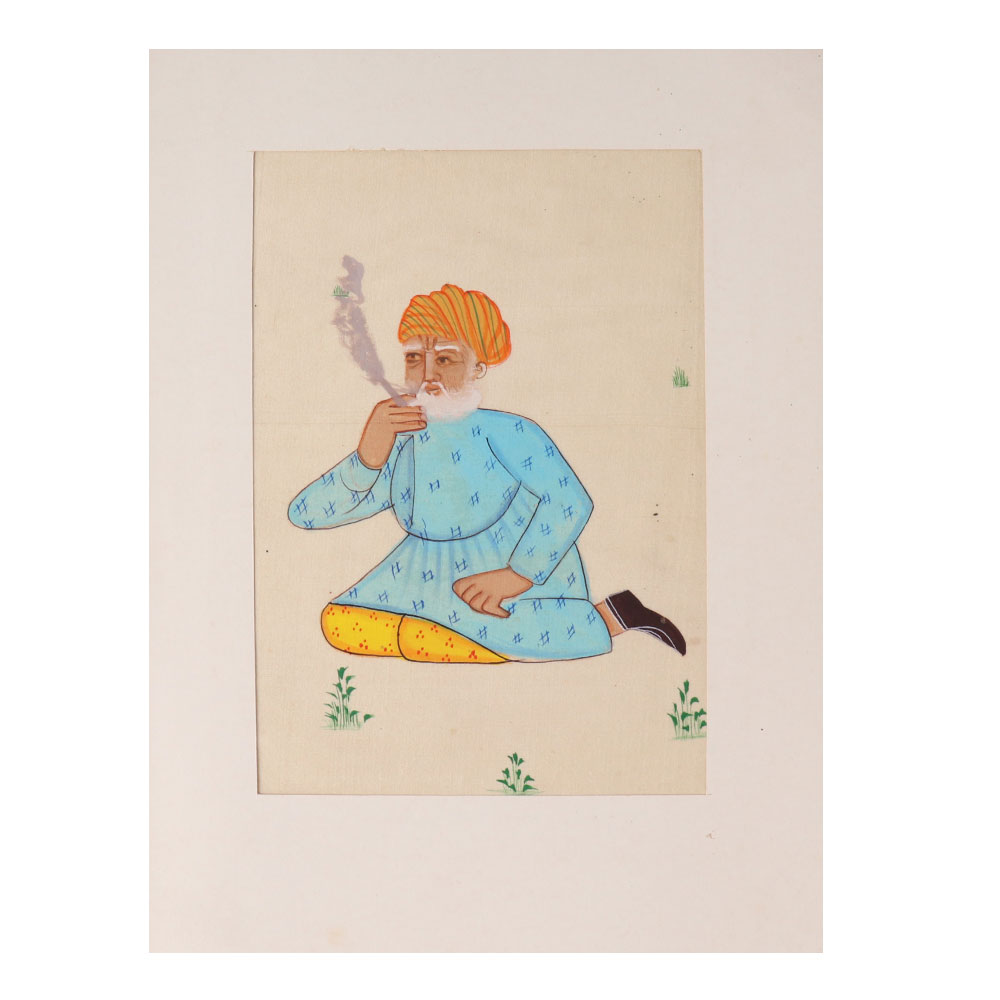 • Indian Old Man Smoking Watercolor Painting