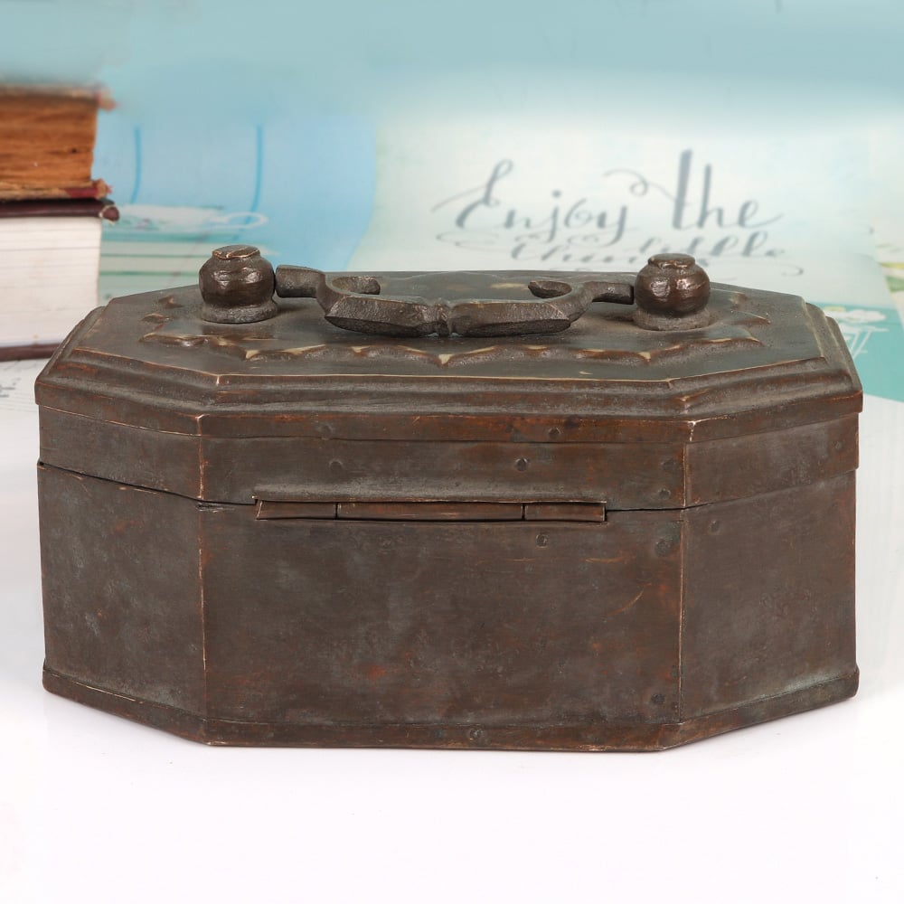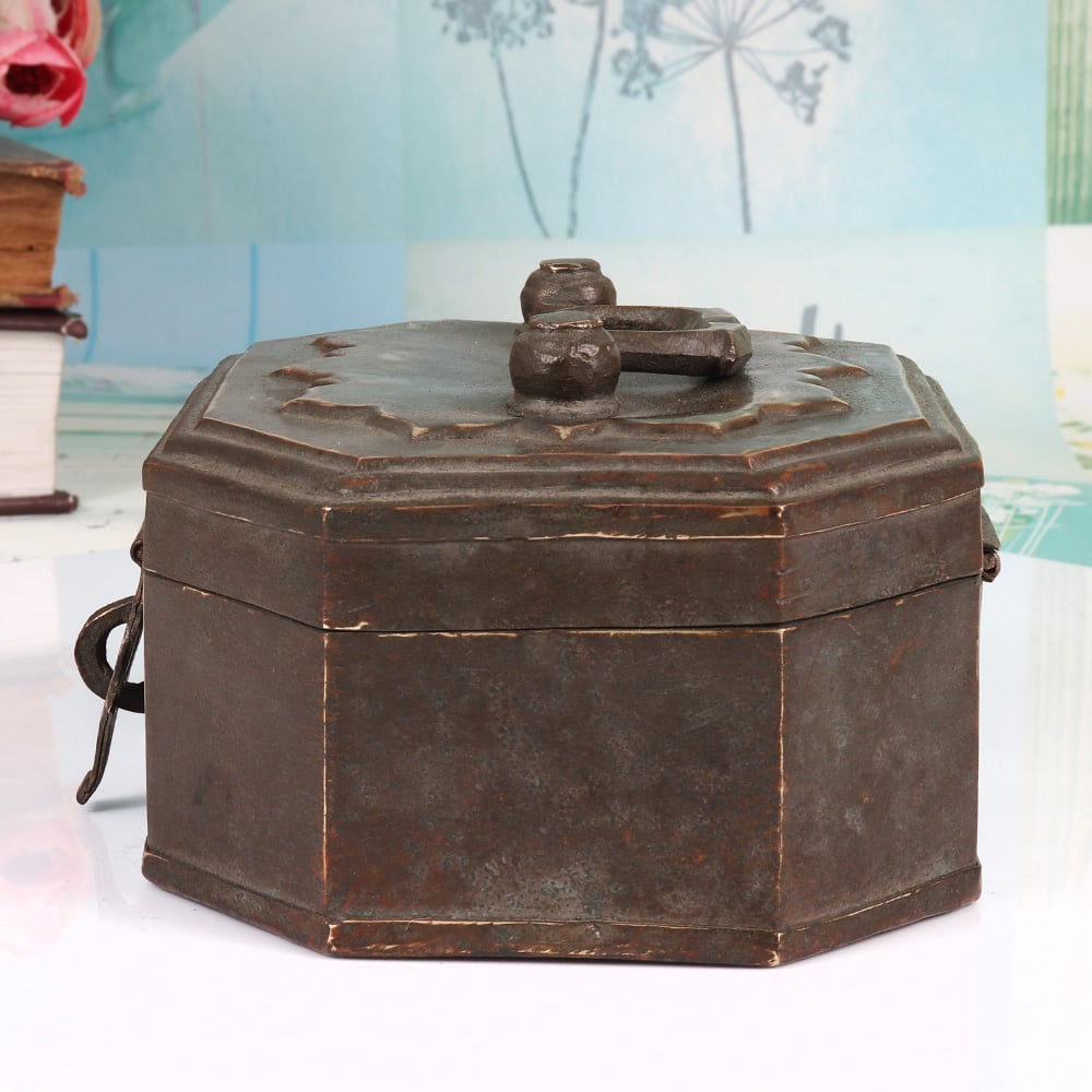 Indulge in the age-old tradition of paan with this exquisite brass paan daan box. Crafted with meticulous attention to detail, this vintage-inspired container boasts five compartments, a secure latch, and a convenient handle - making it the perfect companion for your daily paan ritual. Elevate your paan experience with this beautifully designed paan daan. Its timeless brass construction and thoughtful features make it a functional yet elegant addition to your home. Whether keeping it on your coffee table or using it on the go, this paan daan will infuse your daily routine with a touch of tradition and sophistication. Treat yourself or gift this paan daan to a loved one who appreciates the finer things in life. Its classic appeal and practical design make it a cherished keepsake that will be enjoyed for years to come. Indulge in the ritual of paan with this truly special brass container.