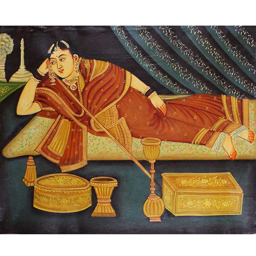 • Indian Princess With A Hookah Canvas Painting