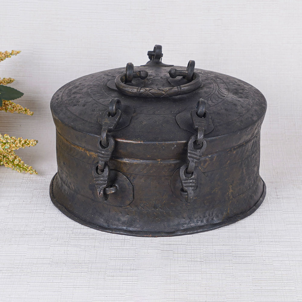Introducing our exquisite Antique Brass Jewelry Box, handcrafted by highly skilled Indian artisans. This luxury jewelry box features a sleek and elegant design with a striking black finish, instantly capturing attention as a captivating decorative piece. It’s plain yet refined aesthetics make it a versatile addition to any home or office decor. Designed for convenience, this jewelry box is equipped with a sturdy handle atop, allowing easy transportation and effortless access to your treasured jewelry and precious stones. Its antique finish adds a touch of timeless charm, creating an air of sophistication. The box is secured with a latch, ensuring the safekeeping of your valuable possessions. Its exceptional craftsmanship makes it a perfect display piece for museums and exhibitions, effortlessly attracting discerning customers. Celebrate special occasions or festive moments by gifting this nice jewelry box to your loved ones. This exquisite creation combines functionality, beauty, and artistry, making it a cherished and enduring gift. Elevate your style and indulge in the opulence of our Antique Brass Jewelry Box today.