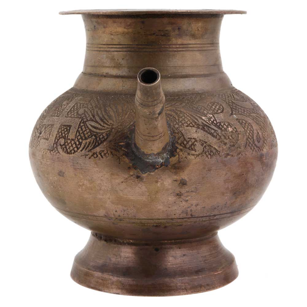 • Indian Spouted Floral Brass Pot Lota