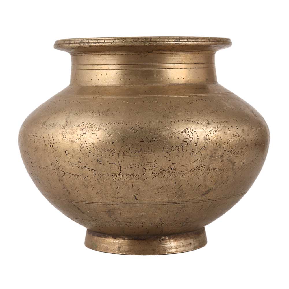 The brass water pot or lota is a precious item that holds great importance in Indian culture. This pot is made from high-quality brass and is exquisitely engraved with intricate designs and patterns. It is commonly used to store holy water during Pooja, havans, and other religious ceremonies. The brass water pot is also a versatile item that can be used for decoration or as an indoor flower pot. It is perfect for offering water to the sun god to maintain spirit and mind balance. The brass water pot is a symbol of purity and devotion, and it adds a touch of elegance and grace to any home. It is a must-have item for anyone who appreciates the beauty of traditional Indian artwork. An ideal gift for every special, festive and auspicious occasions to your loved ones.