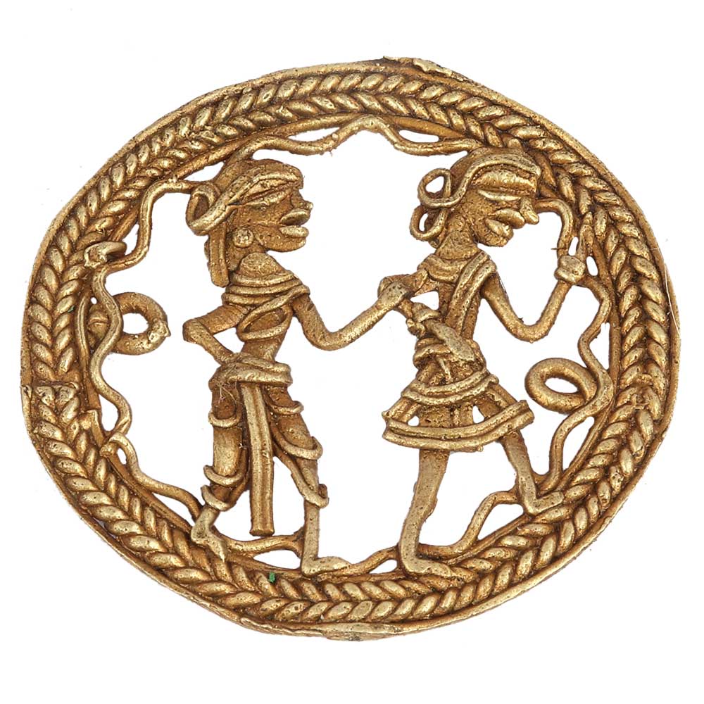 Indian Taditional Brass Dhokra Wall Art Wall Hanging in a round frame is the perfect office, house and hotel decoration. New year gift, house warming gift , souvenir and start of a new venture.