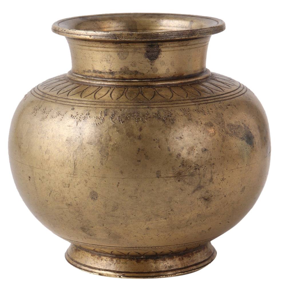 Spread positive energy in your room with this Indian brass lota or water pot, traditionally made of high quality brass. This incredible lota has a unique design with a large belly and a small opening. For centuries, lotas have been used for morning sun prayers by offering water to the sun as it disciplines and maintains balance of mind and spirit. Place this lota in the north or east of the room to spread positive energy and absorb negative energy from the environment. Its vintage style is a delight for vintage art collectors and decor experts. A perfect gift for your family and friends on special and festive occasions.