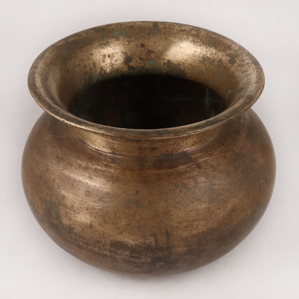 This Brass Holy Water Pot with its alluring antique brown finish is a true masterpiece handcrafted by highly skilled Indian artisans hailing from the enchanting region of Assam. Made from the finest quality brass, this holy water pot exudes elegance and craftsmanship that's second to none. A revered item in temples, it holds a sacred role during rituals, havans, and offerings to deities like the revered Shivling and the benevolent Sun God. Its spiritual importance goes beyond its utilitarian function as it is believed to emanate positive energy when placed in the north or east of a home, filled with water. In India, this divine lota holds great significance, representing a symbol of faith and devotion. While it performs a vital role in religious ceremonies, its versatility extends further as it can be used as a striking flower pot, adding charm to any space. With its profound cultural roots and aesthetic appeal, this brass holy water pot can be treasured as a valuable addition to your collection or presented as a thoughtful gift to loved ones on special or festive occasions.