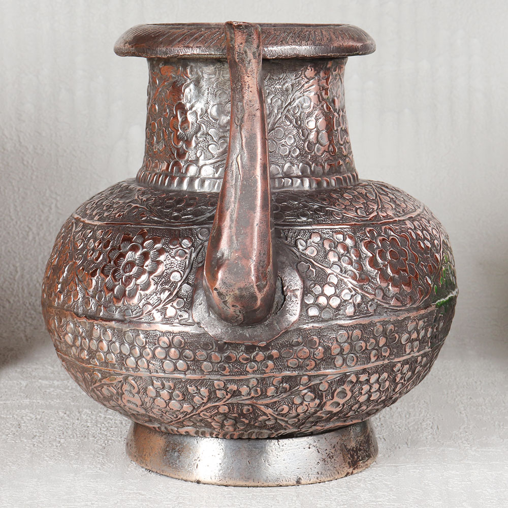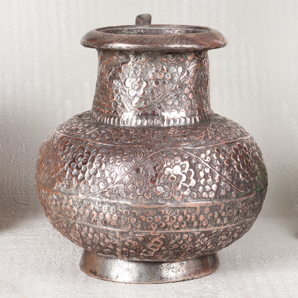 Buy a Vintage Copper Water Pot with Spout online and get a hassle free delivery. Crafted to perfection by professional Indian artisans from the heartland of Islamic Art, Hyderabad, this exquisite piece embodies centuries of tradition and craftsmanship. Meticulously handcrafted from high-quality copper, this water pot boasts an antique brown finish that exudes an aura of vintage charm. Adorned with intricate engravings and beautiful designs, it tells a story of rich heritage and cultural significance. This versatile masterpiece finds its place gracefully in your home, office, restaurant, hotel, or cafe prayer room, adding an air of sophistication to any space. Use it during rituals and prayers at temples or as a stunning decorative item. Vintage collectors will find it to be a prized addition to their collection, and it's ideal for showcasing at exhibitions. Share the gift of heritage and artistry with your loved ones on special, festive, or auspicious occasions.