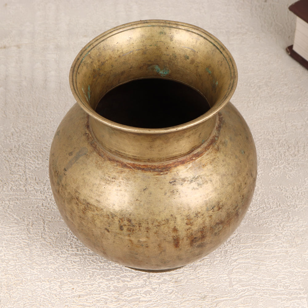 Buy a Vintage Brass Holy Water Pot online which is a sacred Lota meticulously handcrafted by professional Indian artisans from Gujarat. Fashioned from high-quality brass, this timeless piece showcases an antique brown finish, adding a touch of vintage allure. Traditionally employed during havans, auspicious occasions, and rituals, this holy pot seamlessly blends spirituality with aesthetics. Versatile in its application, this holy water pot transcends its ceremonial roots to become a captivating decorative element. Whether adorning your home, office, restaurant, hotel, or cafe, its artisanal elegance elevates any space. Embrace its dual functionality as an indoor flower pot, infusing your surroundings with natural beauty and spiritual energy. As a testament to craftsmanship and heritage, this Vintage Brass Holy Water Pot is an ideal addition to any vintage collection. Furthermore, its enduring charm makes it a thoughtful and meaningful gift for your loved ones during special, festive, or auspicious occasions.