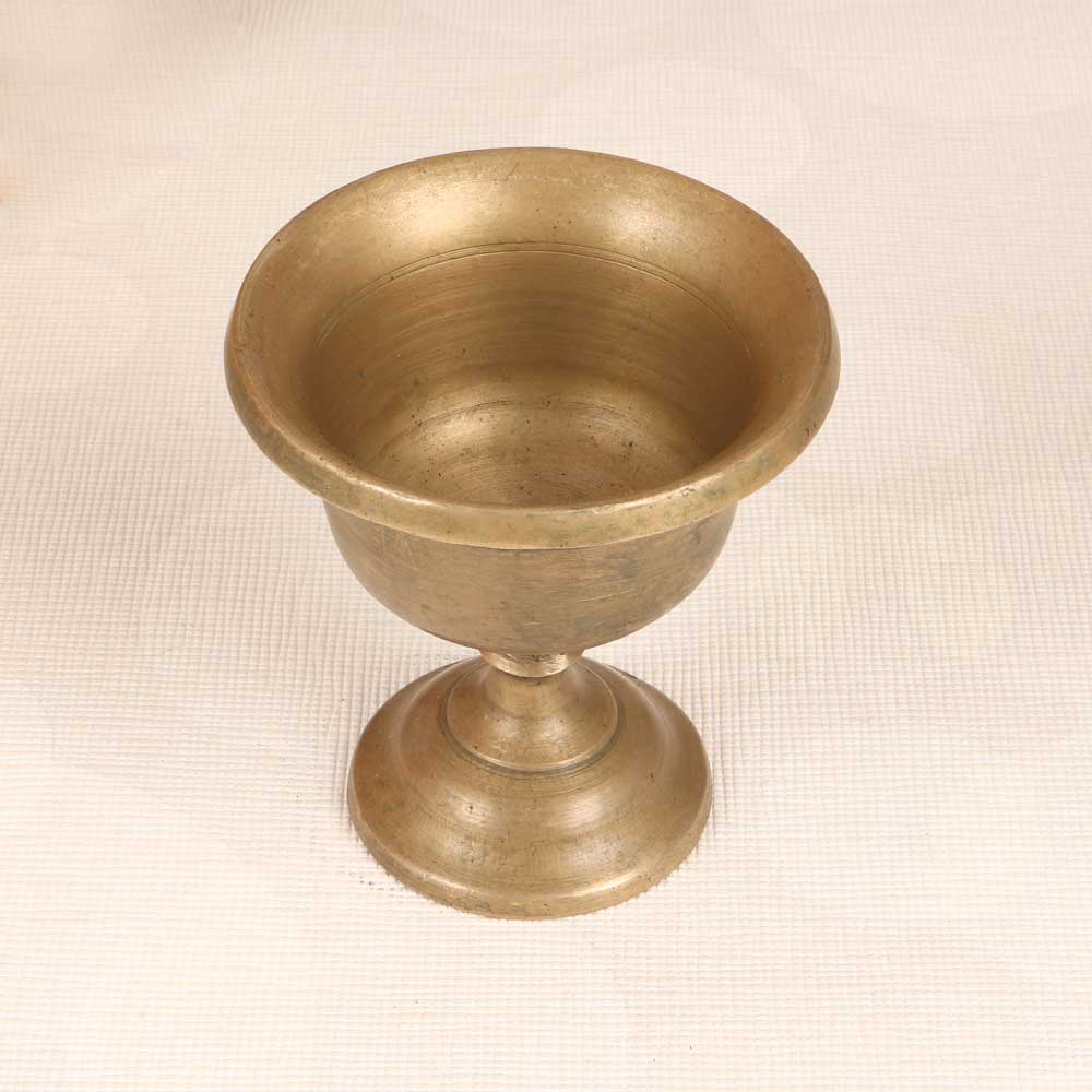 Transport your daily prayers to a place of timeless tradition with the brass holy kumkum cup. This vintage-inspired cup is crafted from solid brass in a classic lotus flower design and polished to a brilliant shine, reflecting your devotion. With its elegant curvature and delicate craftsmanship, this cup adds a graceful touch of ceremony to your prayer space. Honor your faith and connect with the rituals of those who came before you. This brass kumkum cup provides a tangible vessel through which to offer your prayers, just as devotees have done for generations. Use it to hold the crimson kumkum powder, gently pressing your finger to the cool metal and leaving a mark of devotion on your forehead. With daily use, the cup will develop a beautiful patina that reflects your commitment. Let this cup bring ritual, beauty, and tradition to your quiet moments of prayer.