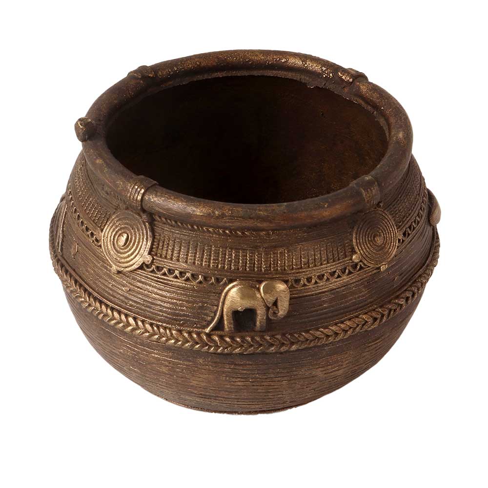Display a rice measurement bowl in your home, office or restaurant to add aesthetic flair to the decor. Buy this brass bowl online from our website for hassle-free delivery to your doorstep. This peetal ka lota comes in an antique brown finish with elephants engraved on the bowl. This brass bowl with beautiful engravings is a treat for vintage art lovers to add to their vintage collection and decorate your home, office, restaurant or hotel. This pretty artefact can be used as a planter in your living room, entryway, hallway or garden to enhance your decor. A perfect vintage style gift for your loved ones on special, festive and auspicious occasion.