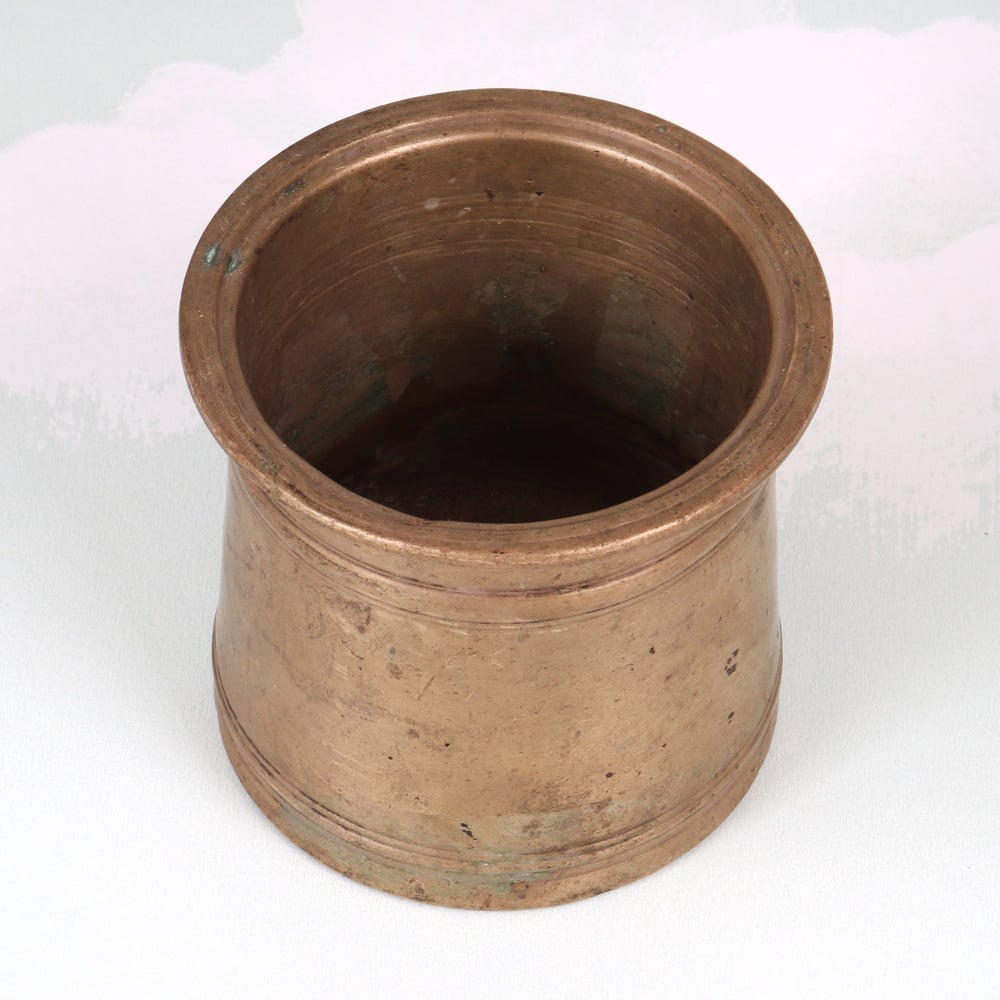 This brass holy panchpatra pot is a timeless piece that will deepen your spiritual practice and transform your prayer space. Crafted with meticulous attention to detail, this traditional Indian ritual vessel holds the essential elements of puja - flowers, incense, oil lamps, kumkum, and other offerings. The warm, vintage-inspired brass finish adds an elegant, grounding presence to your altar or meditation nook. Use it to elevate your daily rituals or bring it out for special occasions like Diwali, Holi, or Puja ceremonies. Its durable construction ensures this panchpatra pot will be a cherished part of your spiritual journey for years to come. Whether you're a devoted yogi, an aspiring meditator, or simply someone seeking to cultivate more mindfulness in your life, this brass holy panchpatra pot is an invaluable tool to deepen your connection to the divine. Infuse your practice with timeless tradition and elevate your sacred space with this stunning ritual vessel.
