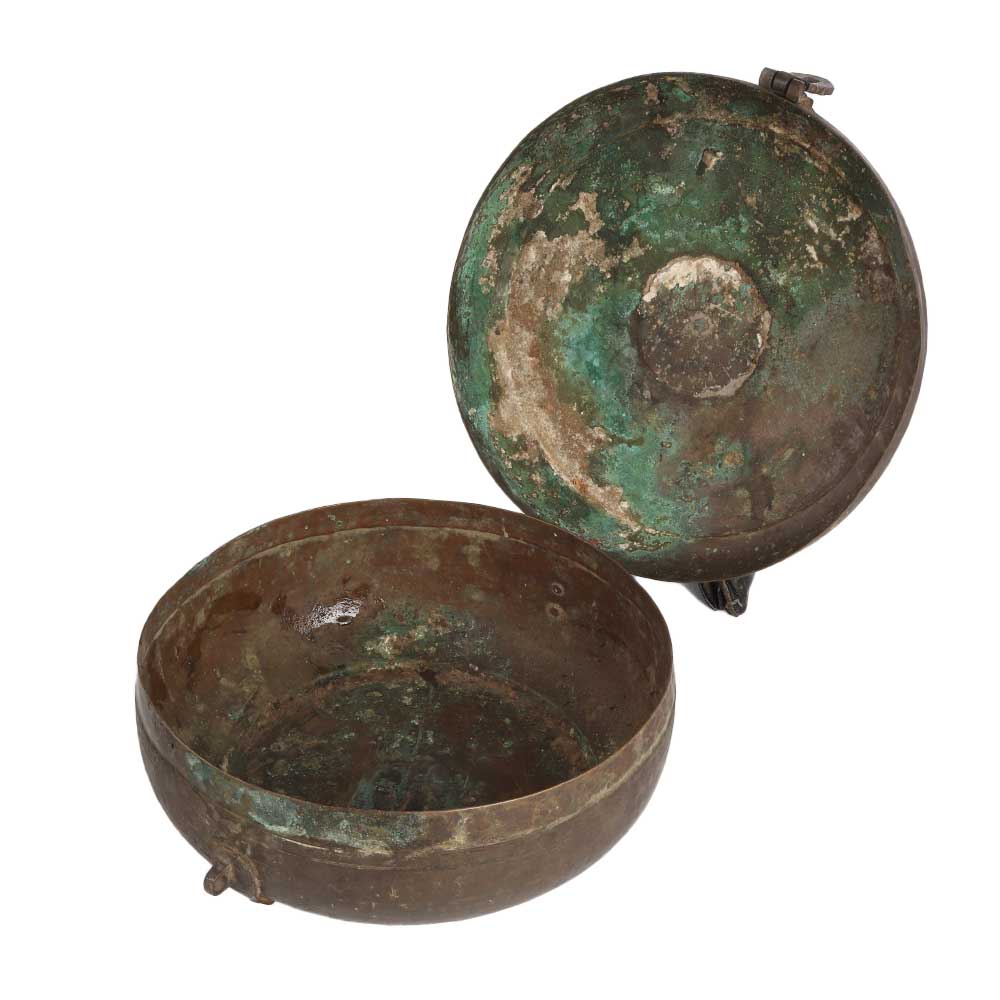 A Vintage Indian box used to store chapati. It has an elegant brown finish with carvings on the top. This sturdy box has a latch and a ring handle on the top. Use this box to store small items in your home, restaurant, hotel or shop. It will add a touch of vintage style to the interior of the restaurant or hotel. As it is made of high quality brass, it leaves a long lasting impression on the interior design. This box is handmade by skilled Indian artisans in Rajasthani art using ancient methods. Buy this handmade vintage box online and catch the eyes of your visitors and guests in your home or restaurant. An ideal gift for your loved ones for special and festive occasion.