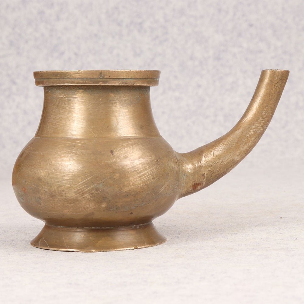 Enhance your spiritual space with the timeless elegance of the Vintage Brass Sagar Water Pot. Handcrafted by highly talented Indian artisans from premium brass, this exquisite piece is a symbol of tradition and craftsmanship. Its antique brown finish adds a touch of authenticity, reminiscent of bygone eras, making it a perfect complement for ritual and prayer at temples. The Sagar Water Pot features a spout for graceful pouring during sacred ceremonies, enhancing the ritualistic experience. Beyond the temple, it seamlessly integrates into various settings, including homes, offices, restaurants, hotels, and cafes. Its versatility allows it to serve as a focal point in prayer rooms or as a decorative piece, enriching any space with its cultural charm. This unique artefact is not only a functional item but also a cherished addition to vintage collections. Its handmade nature ensures each piece is a testament to the artisan's skill and dedication. Share the joy of spirituality and culture by gifting this Vintage Brass Sagar Water Pot to your loved ones on special, festive, or auspicious occasions.