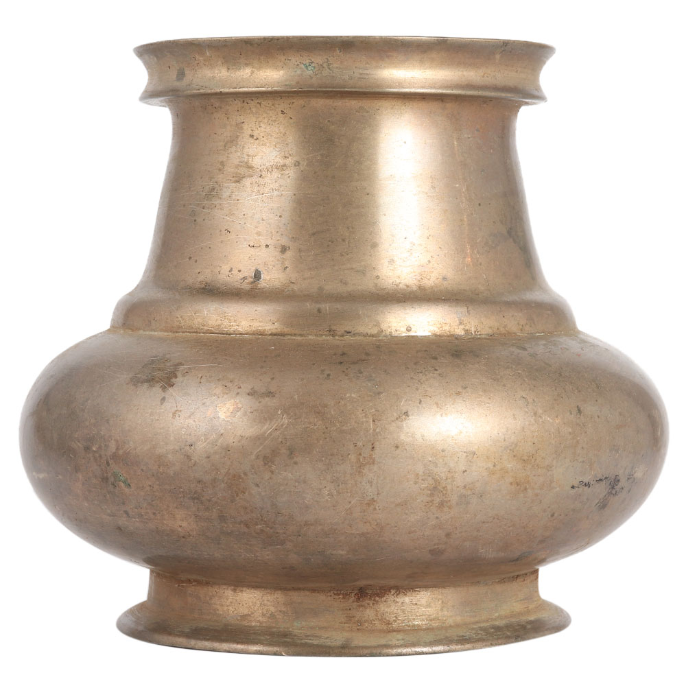 This vintage holy water pot is carved from brass metal alloy. It was hand carved by skilled Indian craftsmen in South Indian art. It has a long spout for pouring holy water at spiritual places. Priests in Hindu temples use this pot to offer blessings to the devotees. It is used to hold holy water during various Hindu rituals. Often used in Hindu havans or other rituals. Place it as a flower pot on a table or shelf in your home, restaurant, spa or hotel. It will be an eye-catcher in your vintage collection.