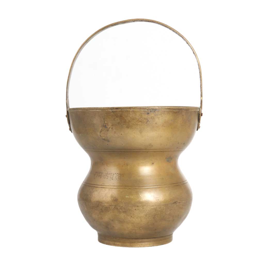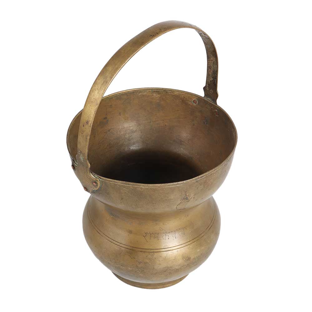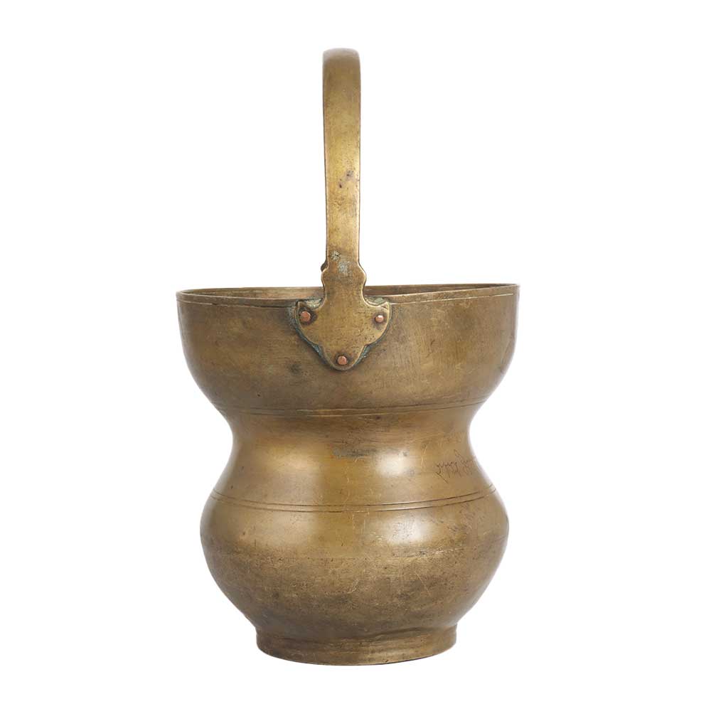 A holy water pot or kamandal with handle in antique brown finish. For a long time, these kamandals have been used by saints and priests in temples to give blessing water to devotees. It is made of best brass by highly skilled and experienced artisans from India with their hands. It will give an alluring look to the interior of your home, office, restaurant, hotel, cafe, shop or spa. Place this brass pot filled with water in the north or east direction of the house to spread positive energy in the environment. An eye-catching pot for a display or vintage collection and definitely a perfect gift for special, festive and auspicious occasions for your loved ones.
