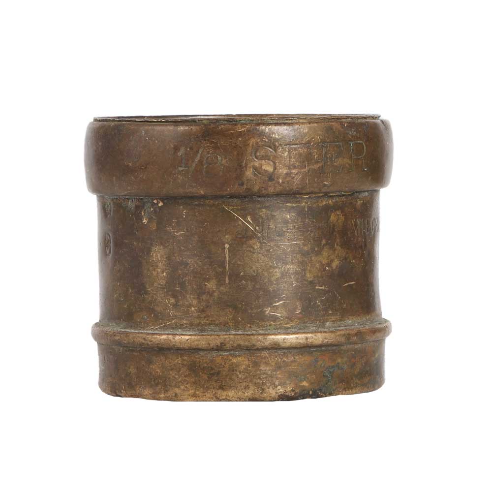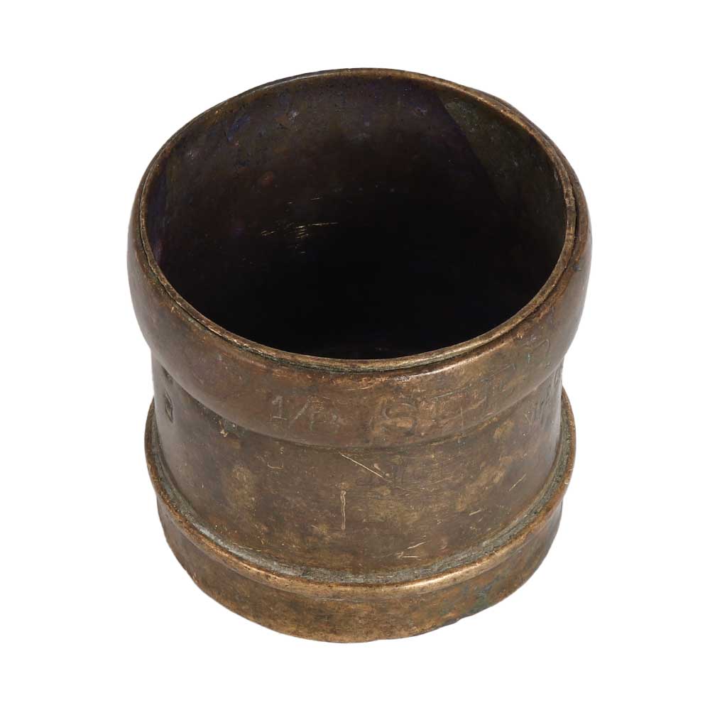 A small measuring bowl made of high quality brass with dark brown appearance. This brass pot will match all kinds of interiors and give your interior a vintage style look. As it is handmade by local Indian artisans from South India, it gives a remarkable impression in the interior design. Buy this brass measurement bowl online from our website to get hassle-free delivery right to your doorstep. A top choice of vintage collectors to display this bowl in their collection, museum and exhibition. A gift for anniversary, birthday, wedding, housewarming, Thanksgiving, New Year, farewell, corporate party, festival or auspicious occasion for your family, friends and relatives.