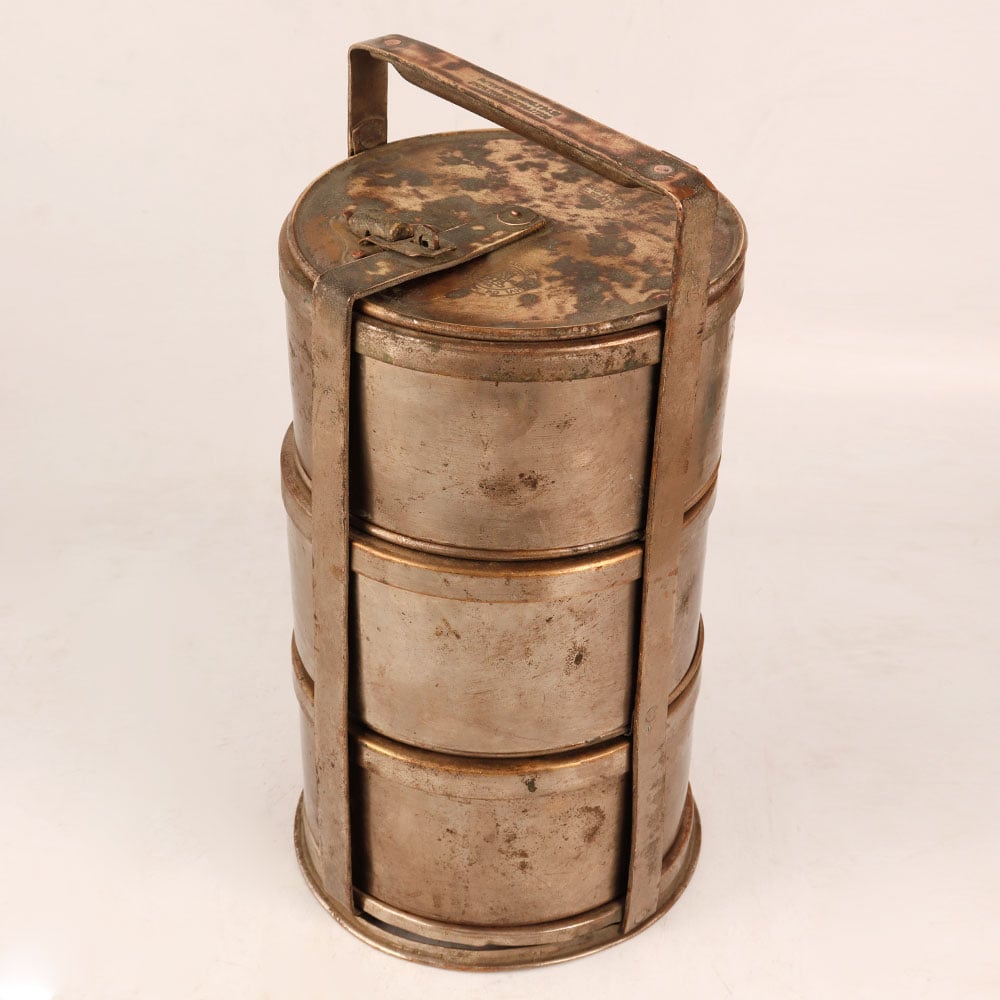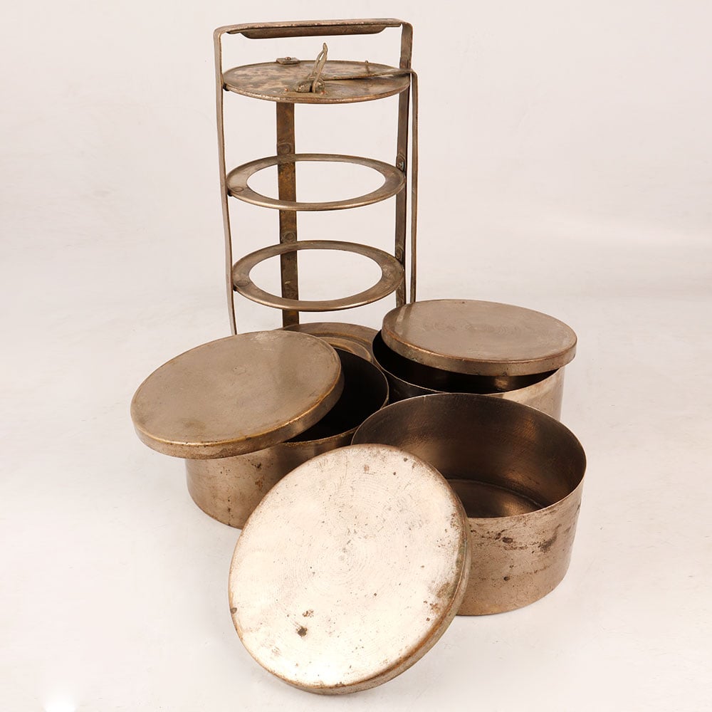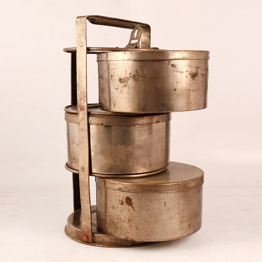 Buy a vintage brass tiffin or lunch box online that enhances your space with its timeless charm. With three spacious compartments, this used item boasts both functionality and aesthetic appeal. Crafted from high-quality brass, its antique brown finish exudes an aura of nostalgia and elegance. Handmade by highly skilled and experienced Indian artisans, this piece carries the legacy of traditional craftsmanship. This vintage Tiffin can be seamlessly incorporated into various settings – whether it's your home, office, restaurant, hotel, or cafe. Its exquisite design invites conversations and adds a touch of history to any space. Use it as a captivating decoration or proudly display it at exhibitions to showcase its unique character. As a valuable addition to your vintage collection, it embodies the bygone eras aesthetics. Celebrate special occasions by gifting this Tiffin to your loved ones. Its timeless appeal makes it an ideal present for festive or auspicious events.