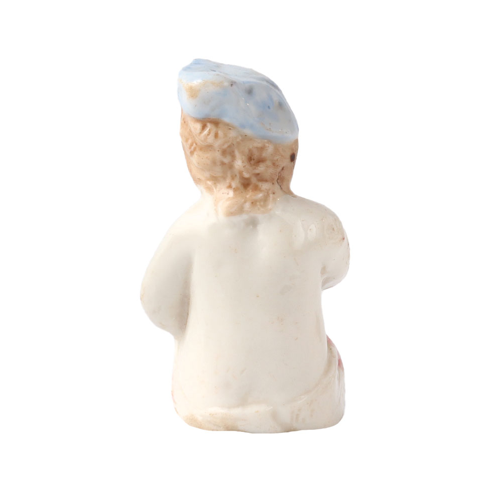 This nostalgic vintage collectible can be used to decorate your hallway, living room, or bedroom. It is made of porcelain. The infant boy is holding food in one hand while biting into something with the other. This hand-painted figurine only needs to be cleaned with a lint-free cloth to stay in good condition. for that special someone, a cute little gift.