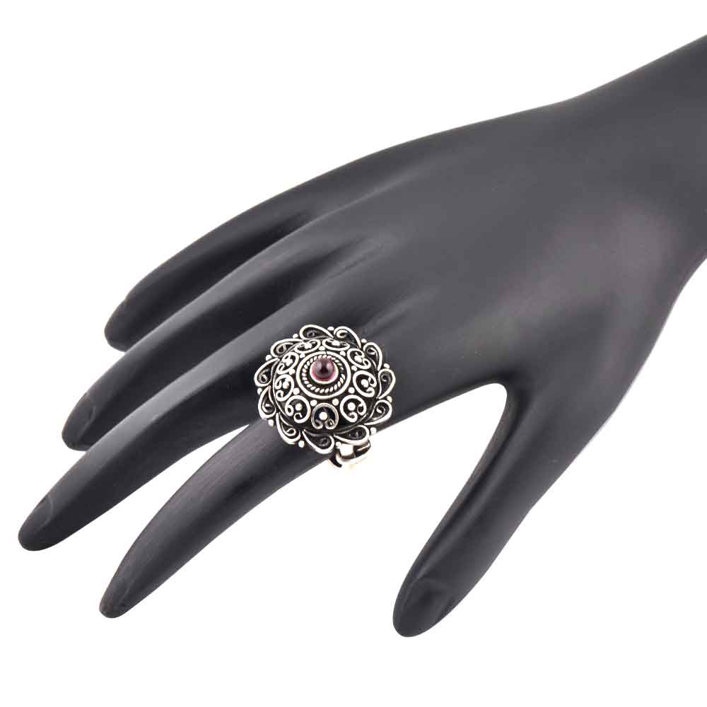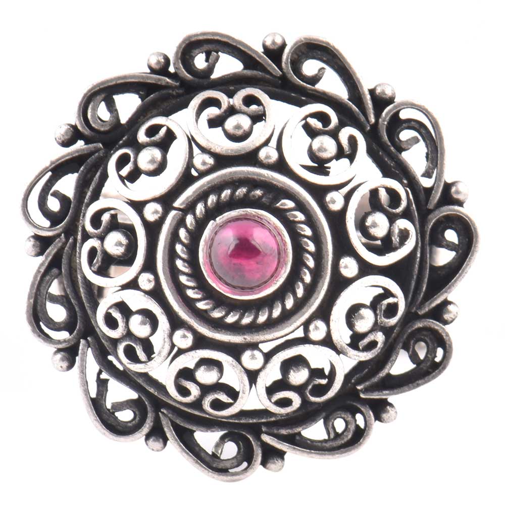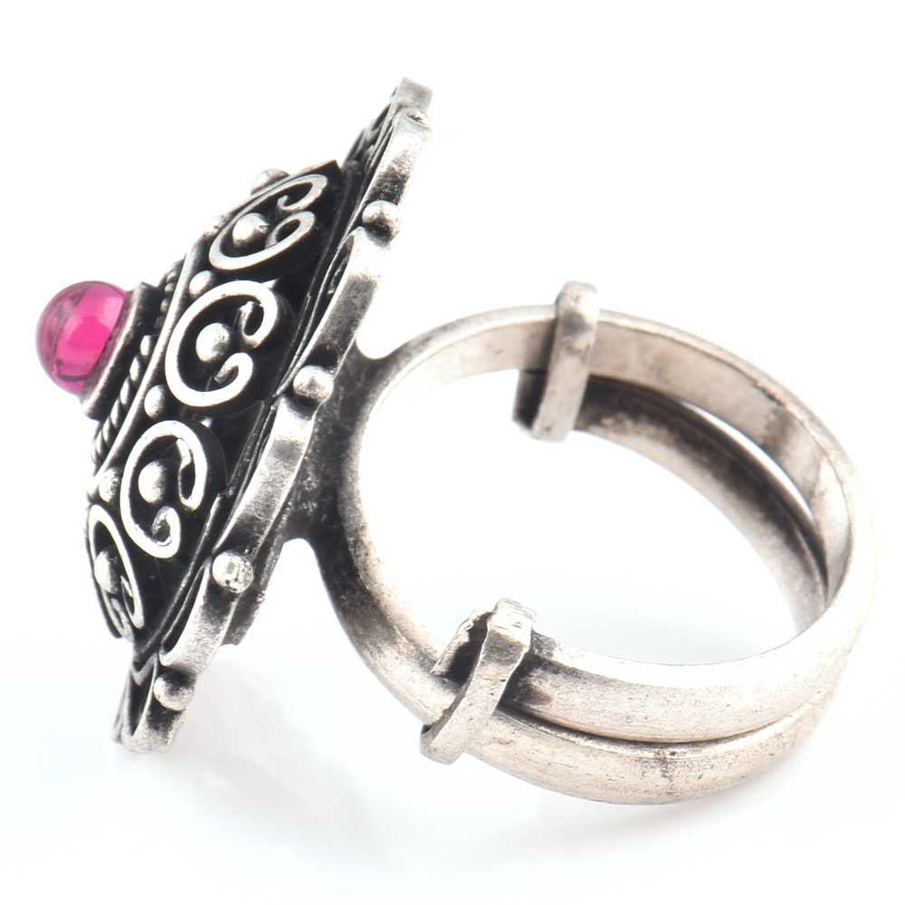 Intricate 92.5 Sterling Silver Ring has embossed petals and Scroll work fashion wear is hand crafted by expert artisans of India is worn in marriages, cocktails, reception, social or other formal gathering. Gift it to your sister, wife or colleague.