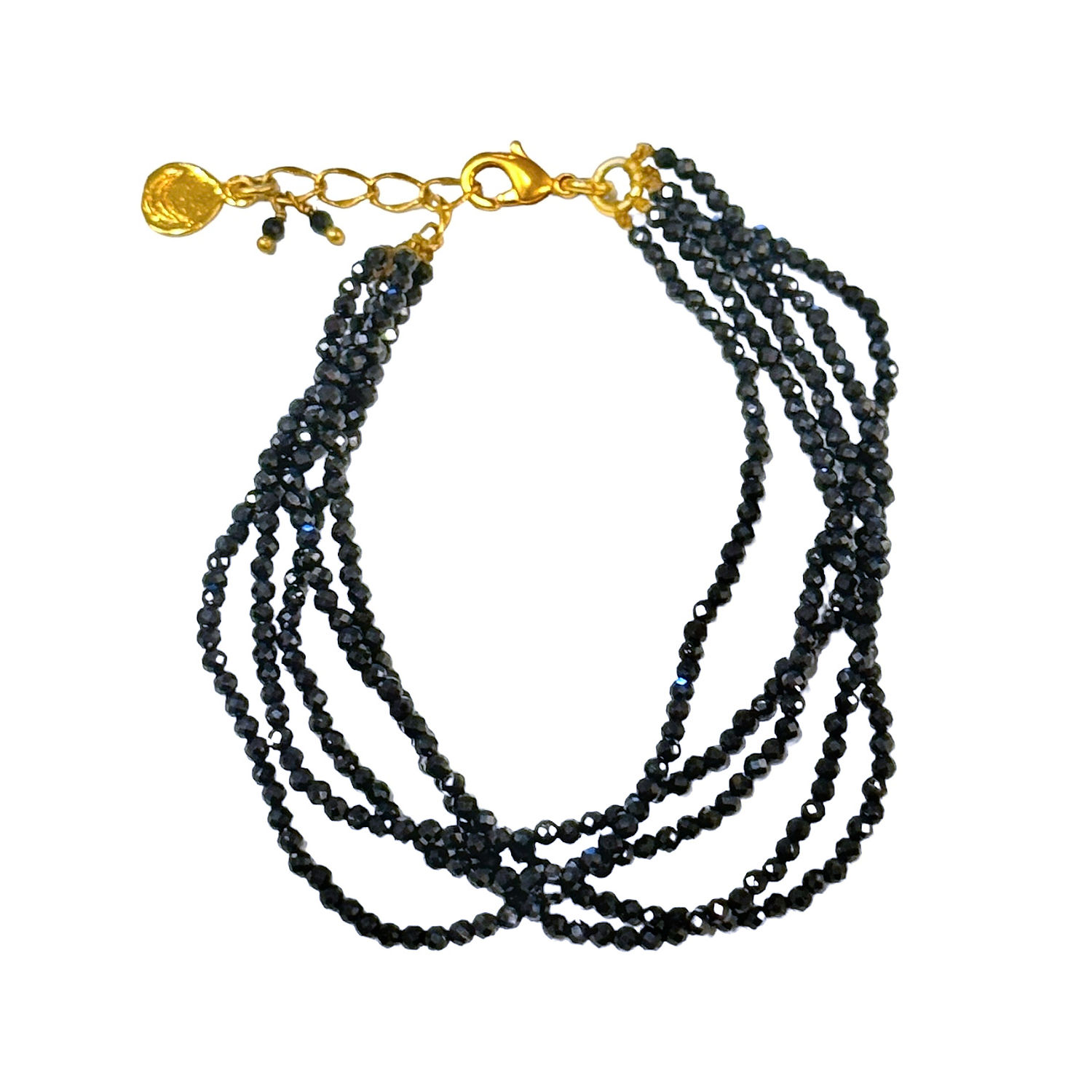 This Iolite Beaded 5-Layer Bracelet combines the mystical beauty of deep indigo iolite gemstones with the warmth of 22K gold-plated brass. Crafted into a layered, cascading design, the bracelet offers a stunning interplay of color and shine, all while remaining lightweight and comfortable. Designed at a 7-inch adjustable length, it fits beautifully on the wrist and showcases exquisite handmade artistry.