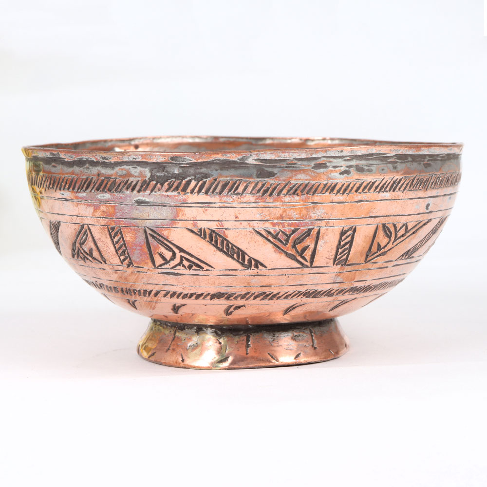 Decorate your living room with the timeless allure of our vintage Copper Bowl that is a masterpiece crafted by talented artisans in Islamic Art. This exquisite bowl boasts an enchanting antique brown finish, showcasing the rich patina that only time can bestow. Intricately engraved with meticulous detail, each stroke reflects the artistry of its creators, creating a stunning visual tapestry that tells a story of tradition and craftsmanship. Handmade from high-quality copper, this bowl transcends mere décor, it's a testament to the enduring beauty of artisanal skill. Versatile in its application, the bowl seamlessly integrates into various settings, be it at home, office, restaurant, hotel, or cafe. Use it as a captivating decorative piece or repurpose it as an indoor flower pot, infusing nature with the grace of vintage aesthetics. An ideal addition to any vintage collection, this copper bowl is more than an object; it's a statement of refined taste and appreciation for heritage. Consider it a thoughtful gift for your loved ones on special, festive, or auspicious occasions.