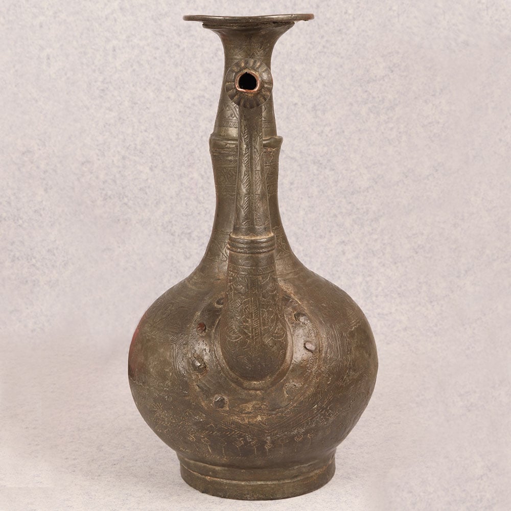 Indulge in the timeless elegance of our Vintage Copper Aftaba Pot that is a stunning testament to the artistry of highly skilled Indian artisans in Islamic design. Meticulously handcrafted from high-quality copper, this exquisite piece showcases the rich cultural heritage of traditional craftsmanship. The aftaba pot features a gracefully curved spout, adding a touch of functional sophistication to its ornate form. Adorned with intricate engravings that weave tales of history and culture, the pot boasts an antique brown finish, lending it an aura of ageless charm. Perfect for enhancing the aesthetic appeal of any space, be it your home, office, restaurant, hotel, or cafe, this masterpiece effortlessly blends art with functionality. Elevate your interior decor by incorporating this vintage treasure into your collection, creating a captivating focal point that resonates with the allure of a bygone era. Its versatility extends beyond aesthetics, as it makes for an ideal and thoughtful gift for your loved ones on special, festive, or auspicious occasions.