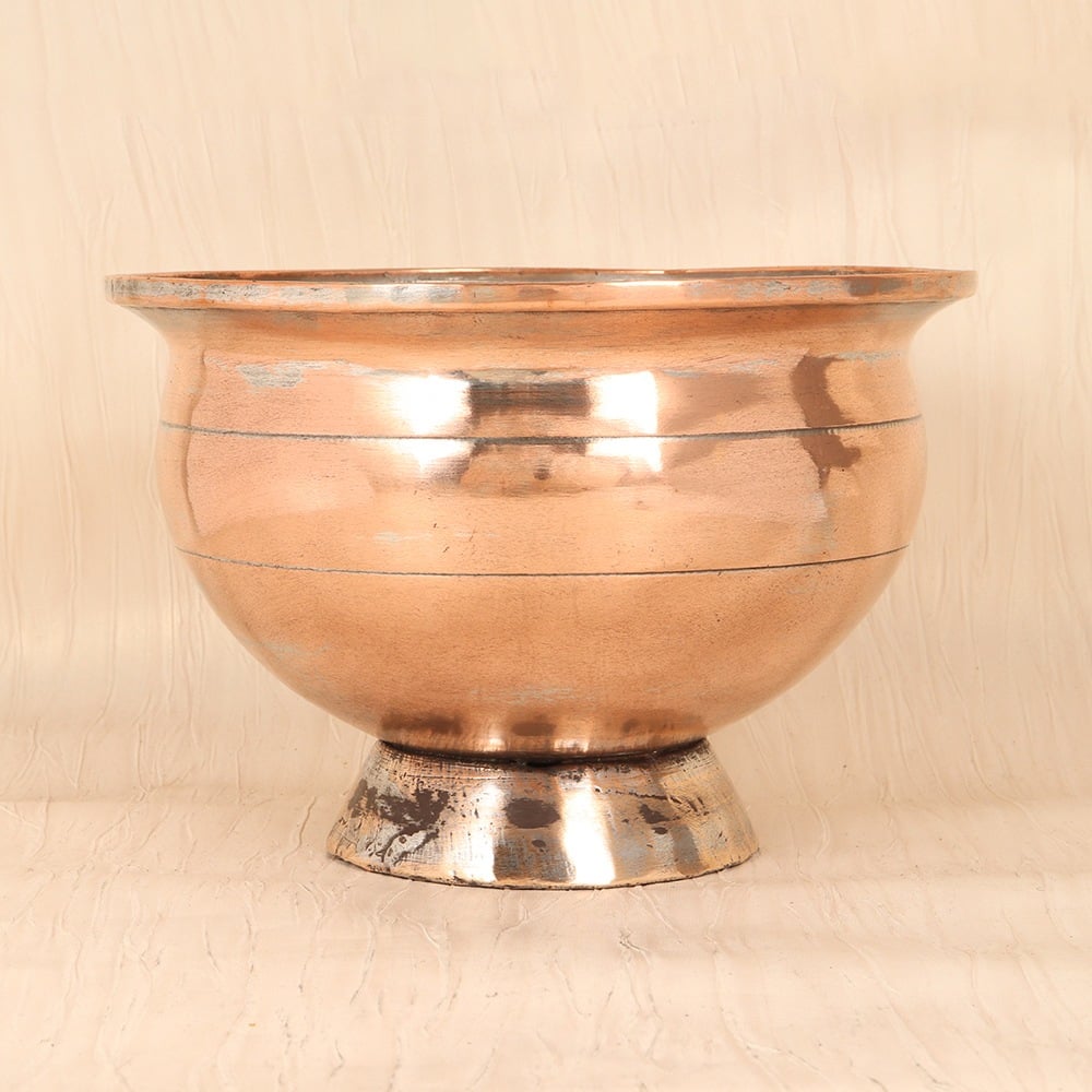 Bring the timeless elegance of Islamic Art into your home with this exquisite vintage copper pot. Crafted with meticulous attention to detail, this piece is a true work of art that will transform the way you display your favorite flowers. Imagine the way this stunning pot will enhance the beauty of your blooms. The warm, glowing copper creates a captivating contrast, making your flowers the true centerpiece of any room. Whether you choose to showcase vibrant peonies, delicate roses, or fragrant eucalyptus, this pot will elevate your floral displays to new heights. This vintage copper pot is not just a functional piece - it's a work of art that will infuse your home with the timeless elegance of Islamic design. Pair it with your favorite vase or use it on its own to create a stunning focal point in your living room, bedroom, or entryway. With its durable construction and timeless appeal, this pot will be a cherished addition to your home for years to come.