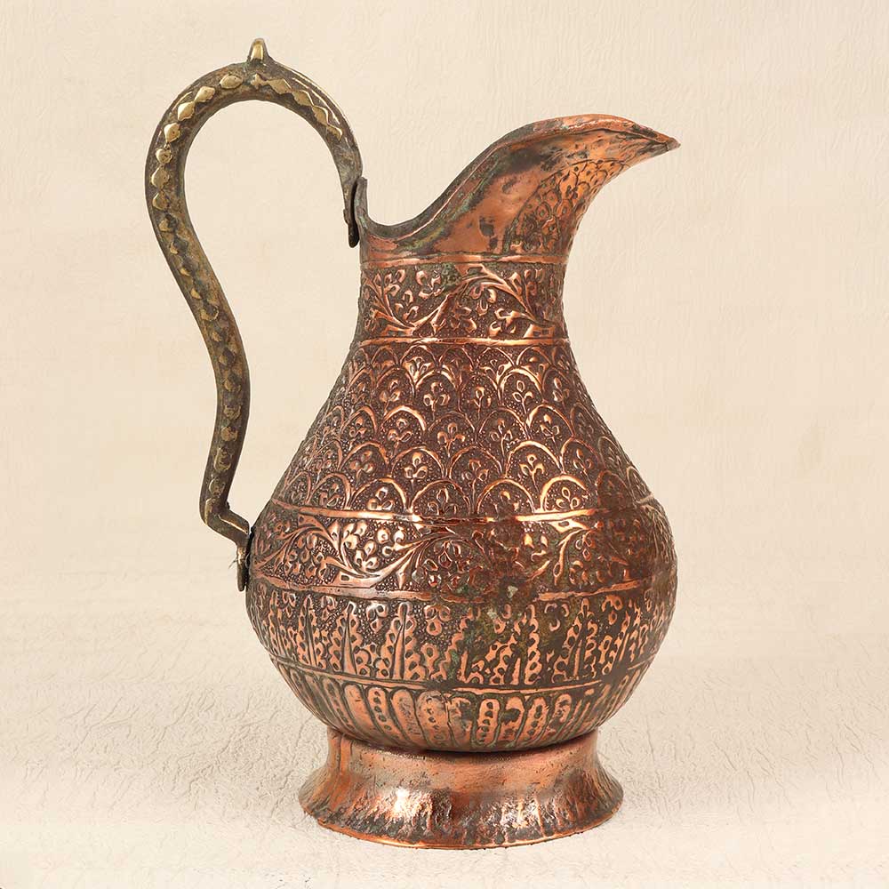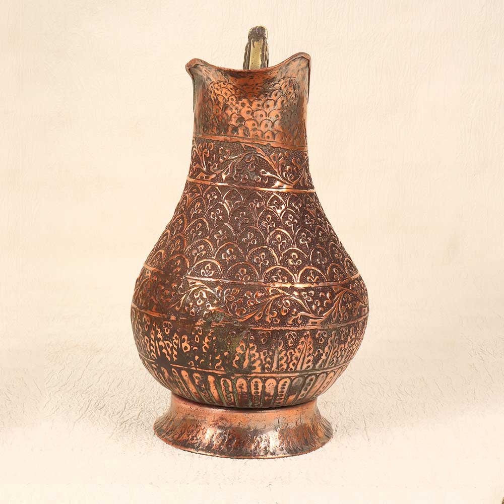 Add Antique Charm to Your Home with this Stunning Handcrafted Copper Islamic Art Jug. This gorgeous vintage copper jug brings old-world charm and cultural flair to any space. The detailed engraving reflects the rich tradition of Islamic artistry passed down through generations. Made entirely by hand, each piece is truly one-of-a-kind. With its brilliant warm glow and intricate patterns, this jug is sure to spark conversation and delight your guests. Use it daily to infuse your home with antique elegance.