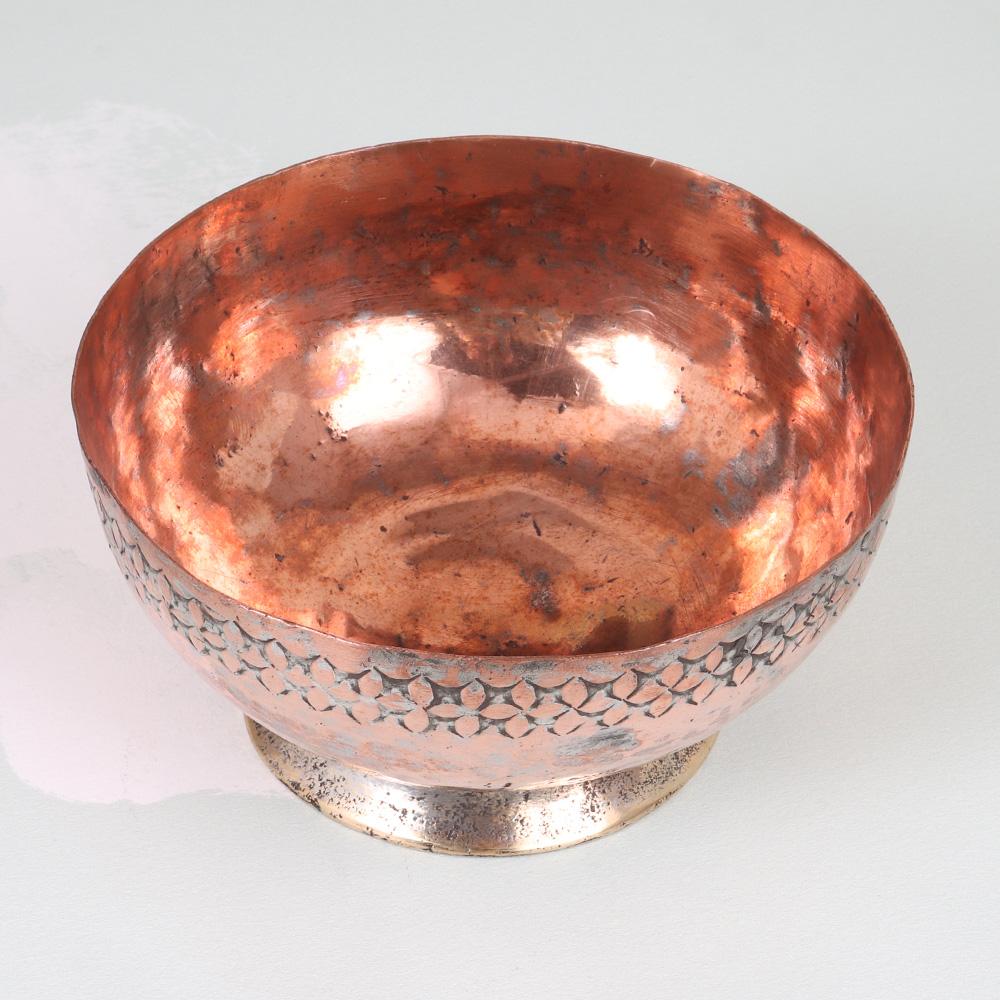 Elevate your home with the captivating allure of this Vintage Copper Islamic Bowl. Immerse yourself in the rich cultural heritage of Peshawari Art, where every intricate detail tells a story. This exquisite copper bowl is more than just a decorative piece - it's a work of art that will transport you to the vibrant streets of Peshawar. The mesmerizing Peshawari design, with its harmonious blend of colors and shapes, will captivate the eye and spark conversations among your guests. Whether you're looking to add a touch of cultural sophistication to your living room, or seeking a unique centerpiece for your dining table, this vintage copper bowl is the perfect addition. Its timeless appeal and functional versatility make it a must-have for any discerning home décor enthusiast.