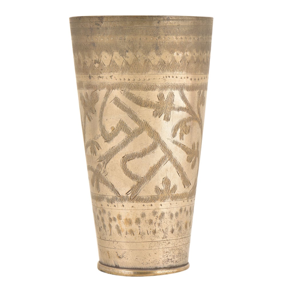 Jai Engraved Brass Tall Punjabi Lassi Glass