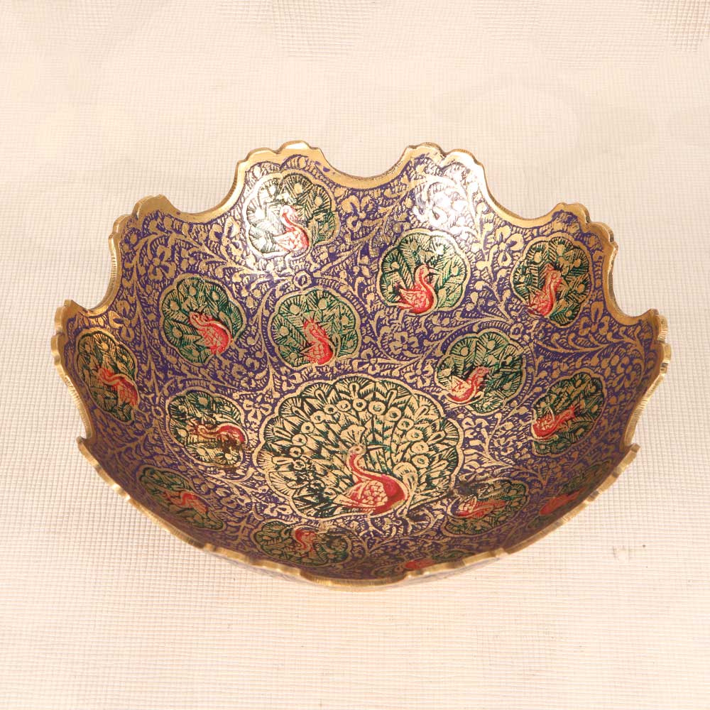 Jaipur Art Handmade Brass Fruit Bowl in Enamel Work for Decor
