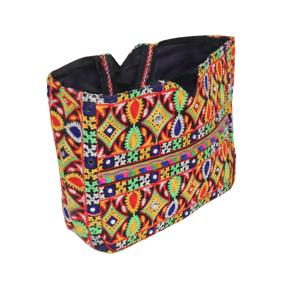 Add a splash of vibrant tradition to your wardrobe with this stunning Jaipuri Handmade Handbag. Expertly crafted by skilled artisans, this cotton tote bag features intricate multicolor embroidery inspired by traditional Rajasthani designs. With its spacious interior and durable construction, it's perfect for everyday use, shopping trips, or festive outings. The eye-catching ethnic patterns in bold reds, blues, greens, and yellows make this bag a standout accessory, whether paired with ethnic wear or casual outfits. Lightweight yet sturdy, it includes strong fabric handles for comfortable carrying. Ideal for women who love boho, vintage, or artisanal fashion, this bag brings both style and culture into your daily routine. Whether you're gifting or keeping it for yourself, this Jaipuri handbag is a perfect blend of functionality and heritage. A must-have for lovers of handcrafted and eco-friendly accessories. Buy now and carry a piece of Rajasthan wherever you go!