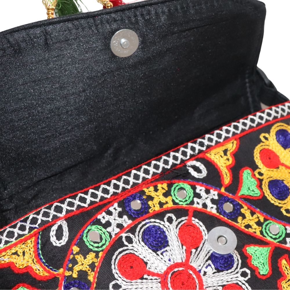 Bring a touch of Rajasthan’s vibrant culture to your everyday fashion with this beautifully handcrafted Jaipuri Embroidered Cotton Sling Bag. Made by skilled artisans, this crossbody bag features traditional mirror work, colorful embroidery, and charming tassels, making it a standout accessory for ethnic and bohemian outfits. The multicolor floral and geometric patterns add a bold, festive flair, while the durable cotton fabric ensures long-lasting use. Lightweight and practical, it includes an adjustable strap for comfortable shoulder or crossbody wear, and a flap closure for secure storage of your essentials. Whether you're heading to a market, cultural event, college, or casual outing, this bag adds personality and handcrafted elegance to your style. It’s a perfect gift for lovers of unique, artisanal accessories and eco-friendly fashion. Let your bag tell a story of craftsmanship and tradition – shop your Jaipuri sling bag today and carry a piece of India’s heritage with you!