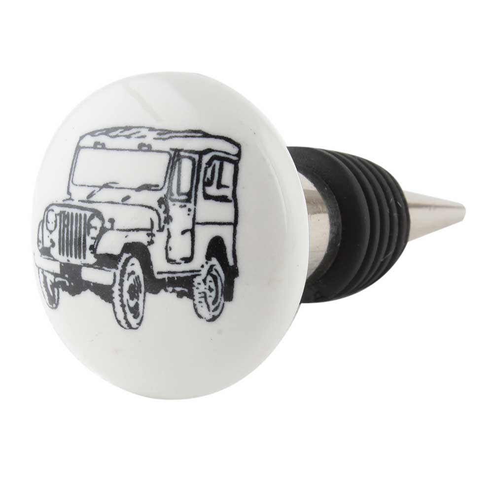 Jeep Flat Ceramic Wine Bottle Stopper. Zinc Alloy Wine Bottle Stopper with Attractive Jute Bag Packaging.
