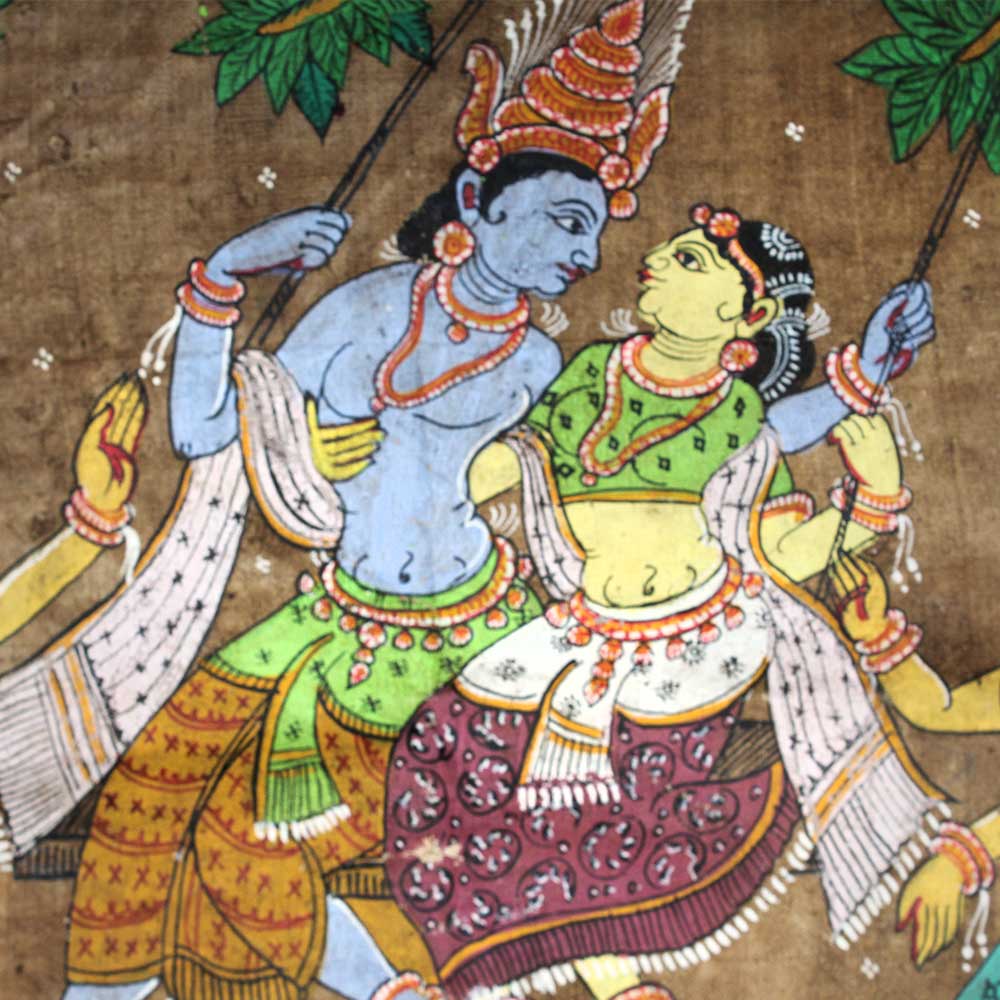 Radha-Krishna Swing Jhula in the Jungle, Radha-Krishna amour is an all-time love legend. This is a very typical Radha-Krishna pose, peacefully seated on the jhula together admiring the gorgeous mother nature surrounding.