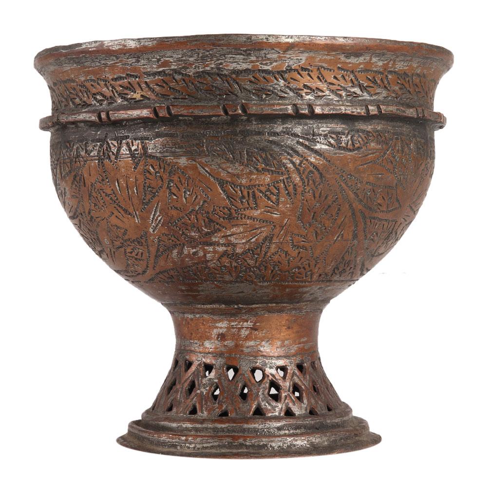 Kashmir Copper Bowl Carved With Chinar Design