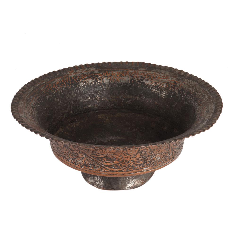 • Kashmiri Art Copper Bowl With Carved Leaves Design
