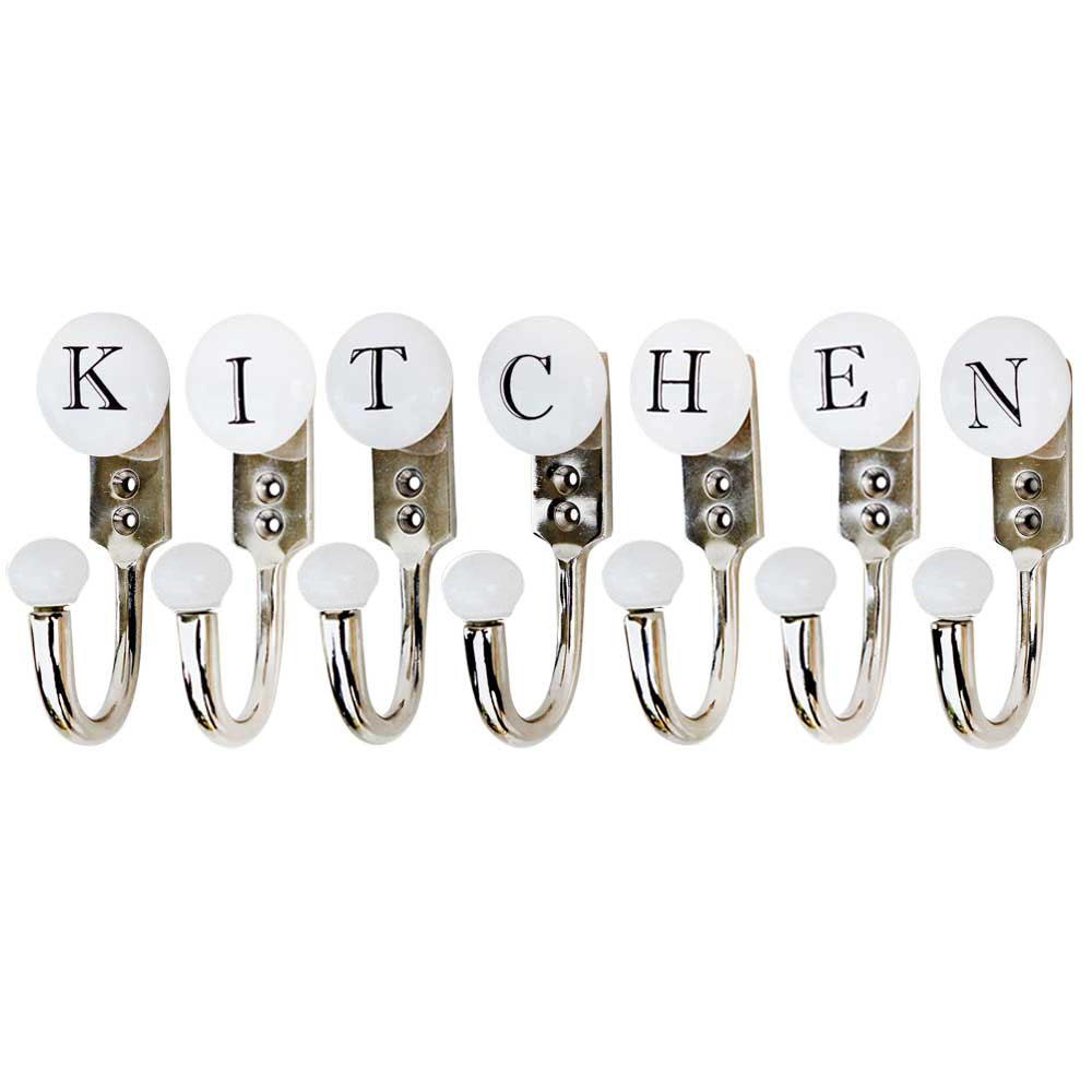 KITCHEN white and black alphabet hooks (combo pack). When put on wall or cabinet it is an art in itself. This hook is strong enough to hold your keys, tea cups, hand towels, cloths etc.